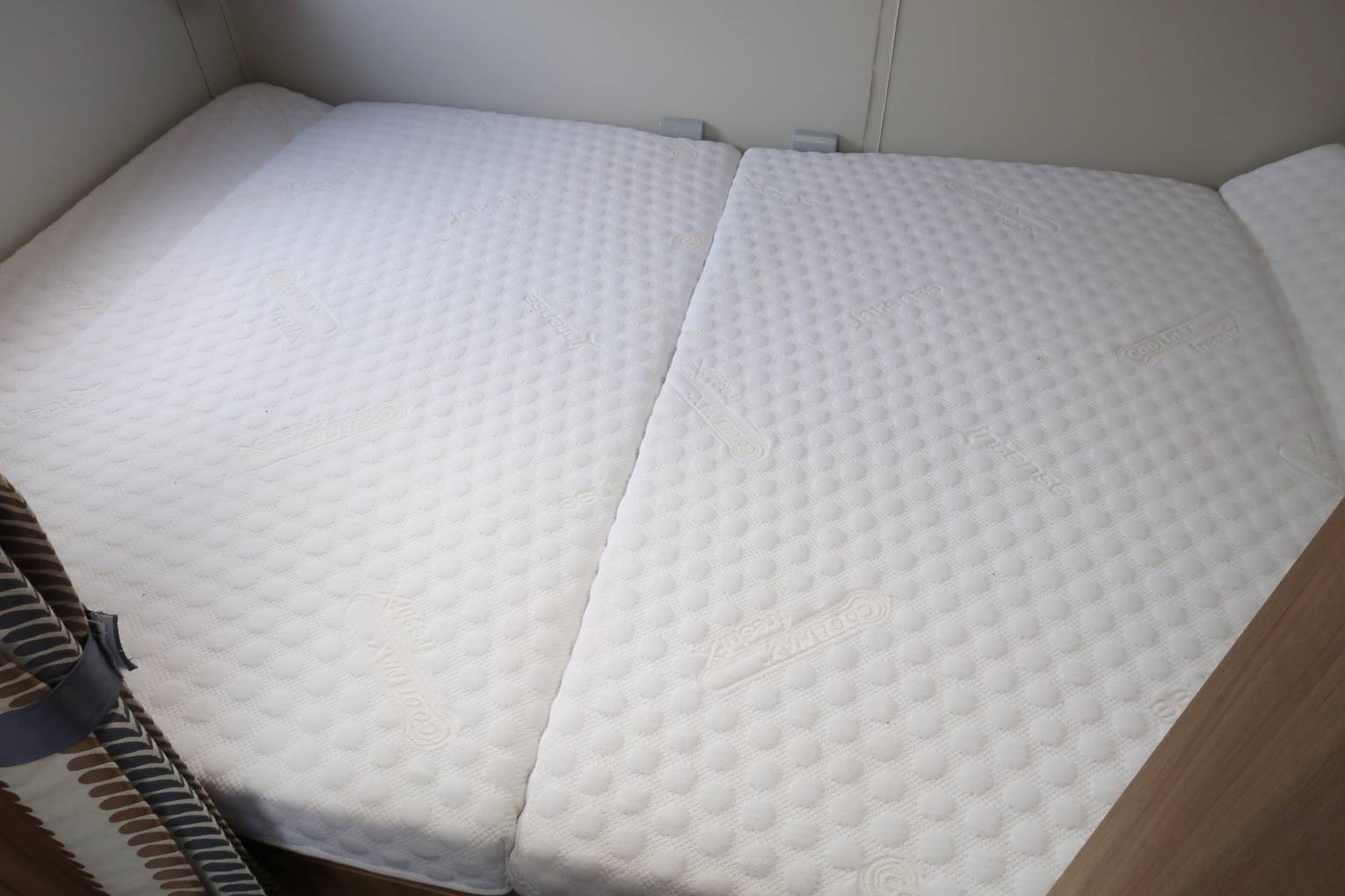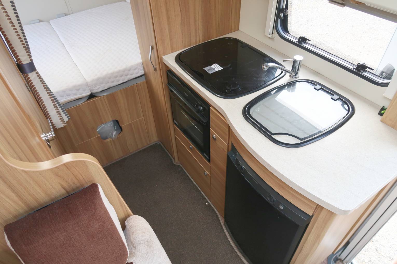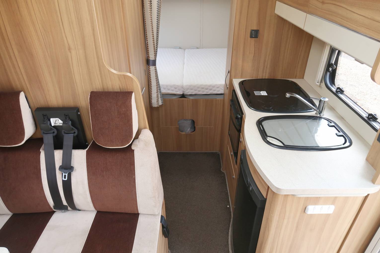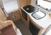 At the rear is a transverse bed which measures 78 x 52 inches so even the tallest of adults should be able to get a great night's sleep on the comfortable memory foam mattress. Numerous overhead lockers provide plenty of storage space and a skylight ensures that in daytime you can lie in bed and read a book whilst you while the hours away on your holiday.