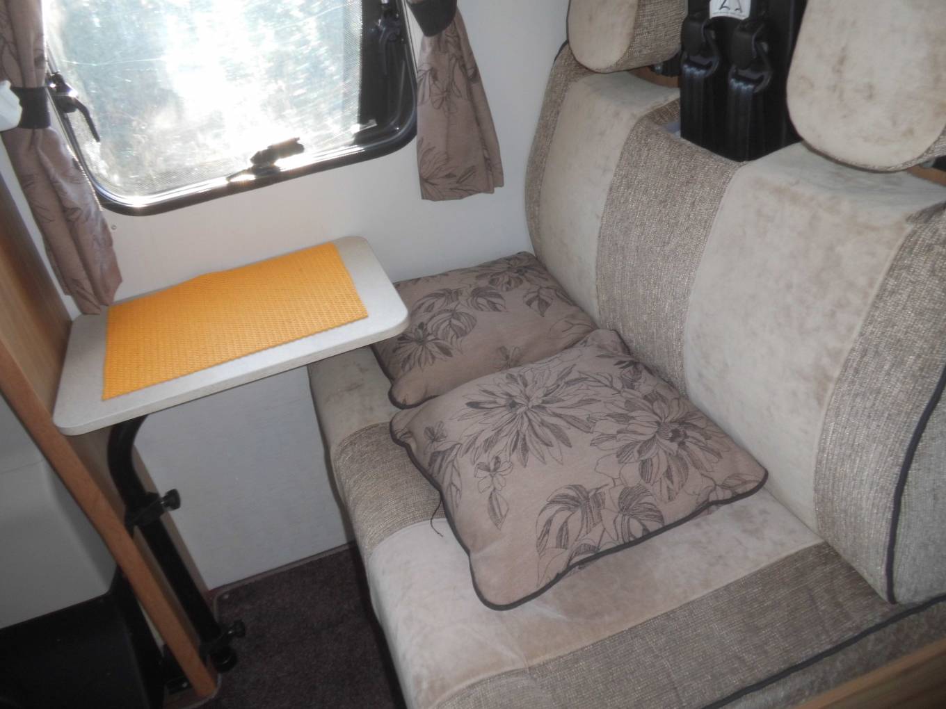 Starting at the front just behind the cab, a front dinette converts into a single bed for a small adult or child, following which the kitchen and bathroom sit opposite. A comfortable fixed double bed at the rear completes the layout.