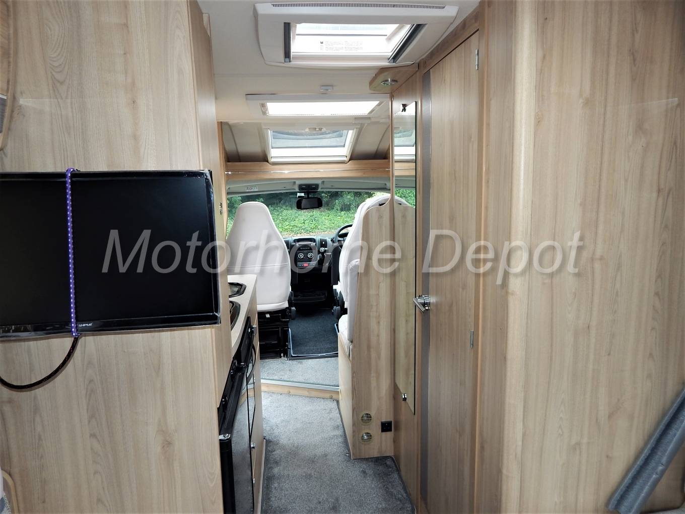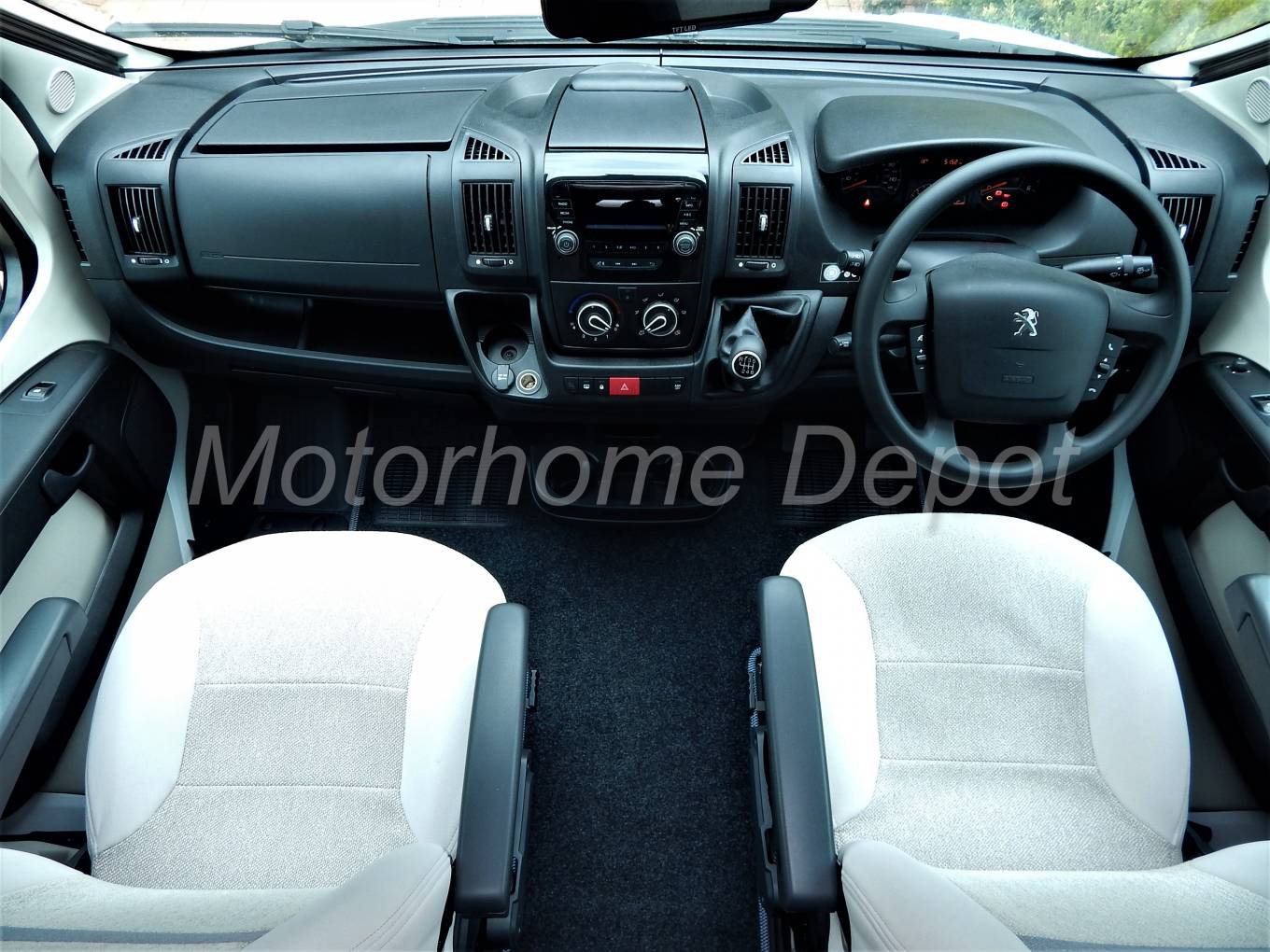 What a versatile motorhome this is, it really packs a lot in in a sub 6M van. Based on the ever popular Peugeot Boxer Chassis with a 2.0 Turbo Diesel engine with Add Blue technology and a 6 speed manual gearbox. First registered in 07/2017, one owner from new and only 5152 miles on the clock it has had two services & two habitation checks at the supplying dealer Stuart Mouland. The Cab benefits from: Air Conditioning; Cruise Control; Reversing Camera screen; Stereo Head unit with Bluetooth connectivity USB & Aux in; Electric Windows; Electric Mirrors; Multi Function Steering Wheel; Remis Blinds to front & side windows.