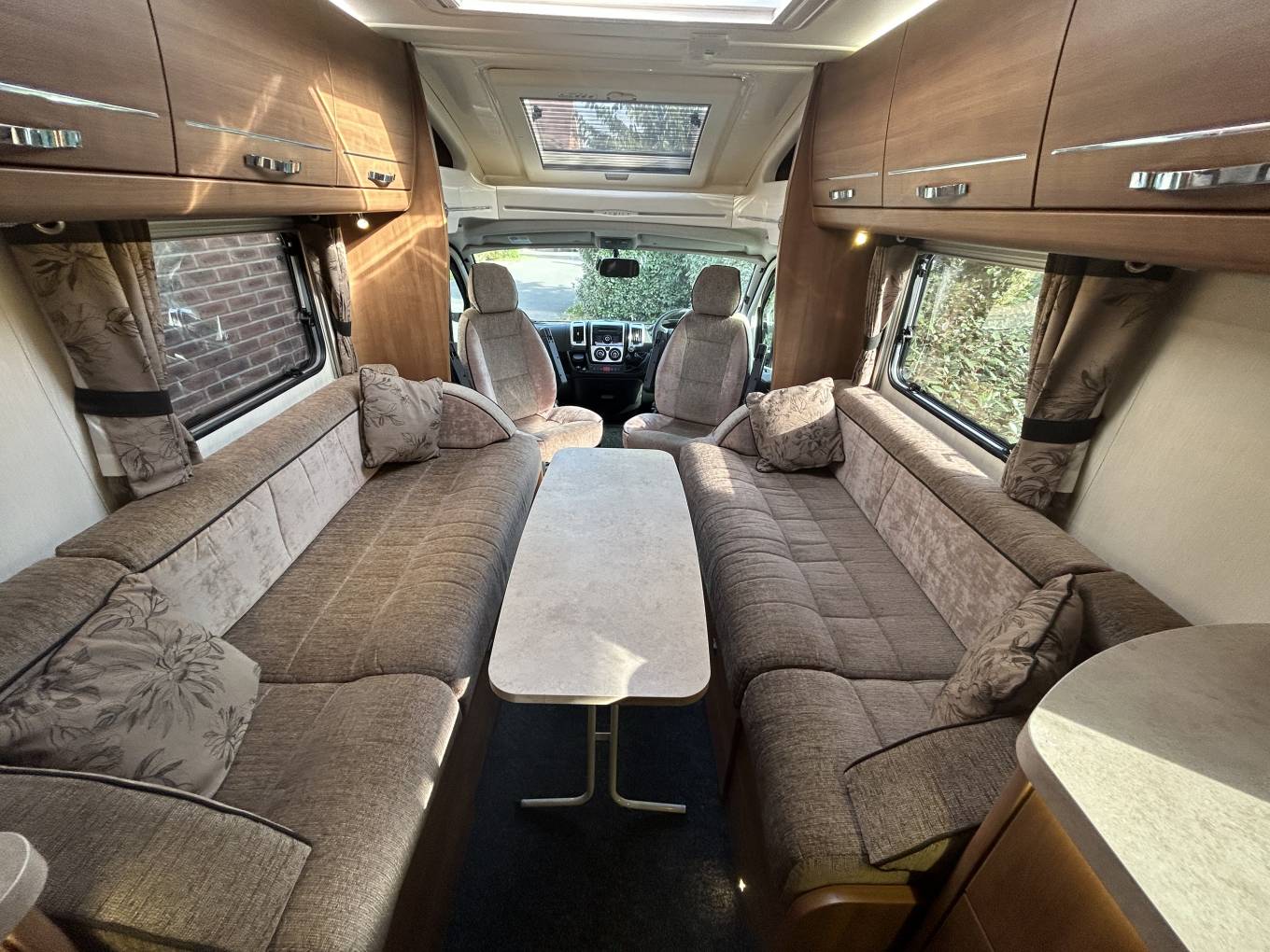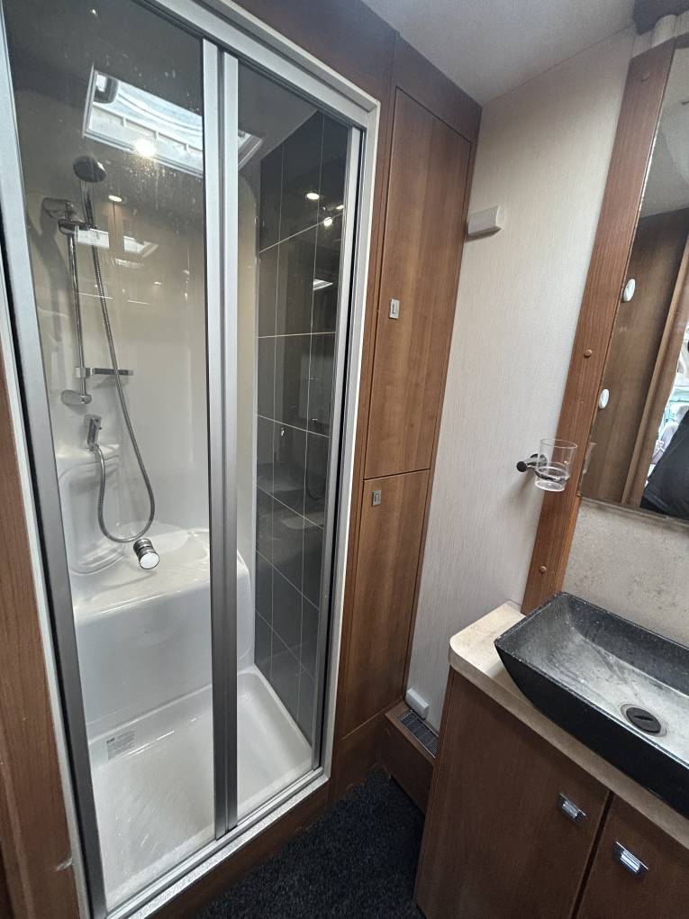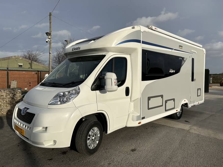 Here we have a Elddis Aspire 275, on a Peugeot 2.2 Manual with 20362 miles. This 2 berth with the end washroom has all the comforts of home and it is surprisingly spacious. The cab has cruise control, handsfree blue-tooth, reverse camera, built in blinds, cab air con and two captain seats, These turn to create a lounge area where you can enjoy family time, entertaining guests or simply relaxing with a drink and watch TV, the soft lighting throughout creates a lovely atmosphere in the evening. The lounge area has plenty of storage below the seats and in the surrounding wall units. There are USB points to keep charged up, The Kitchen has a full oven and grill, sink with mixer tap, extractor fan, plenty of workspace and storage a microwave and a full 3 way fridge. The wash room has plenty of room with a wardrobe, cassette toilet, sink, storage and mirrors, The shower cubicle is separate from the washroom so you can enjoy the space. There are carpets through out, the heating is the independent Alde system and the water is a Truma boiler, it has an alarm system fitted, Externally it has a wind out canopy, bike rack, one gas bottle, Solar panel and storage access. This motorhome comes with 12 months MOT, Habitation check and a 3 month warranty, it can be viewed by appointment only in Mansfield.