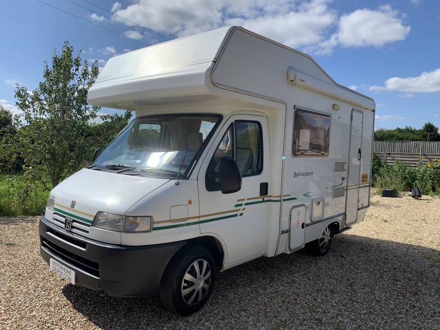 A popular compact and practical end kitchen 4 berth Autoquest 100, built on the Peugeot 1.9TD diesel engine to a manageable 5.4 metres and a gross weight of 3000kgs.