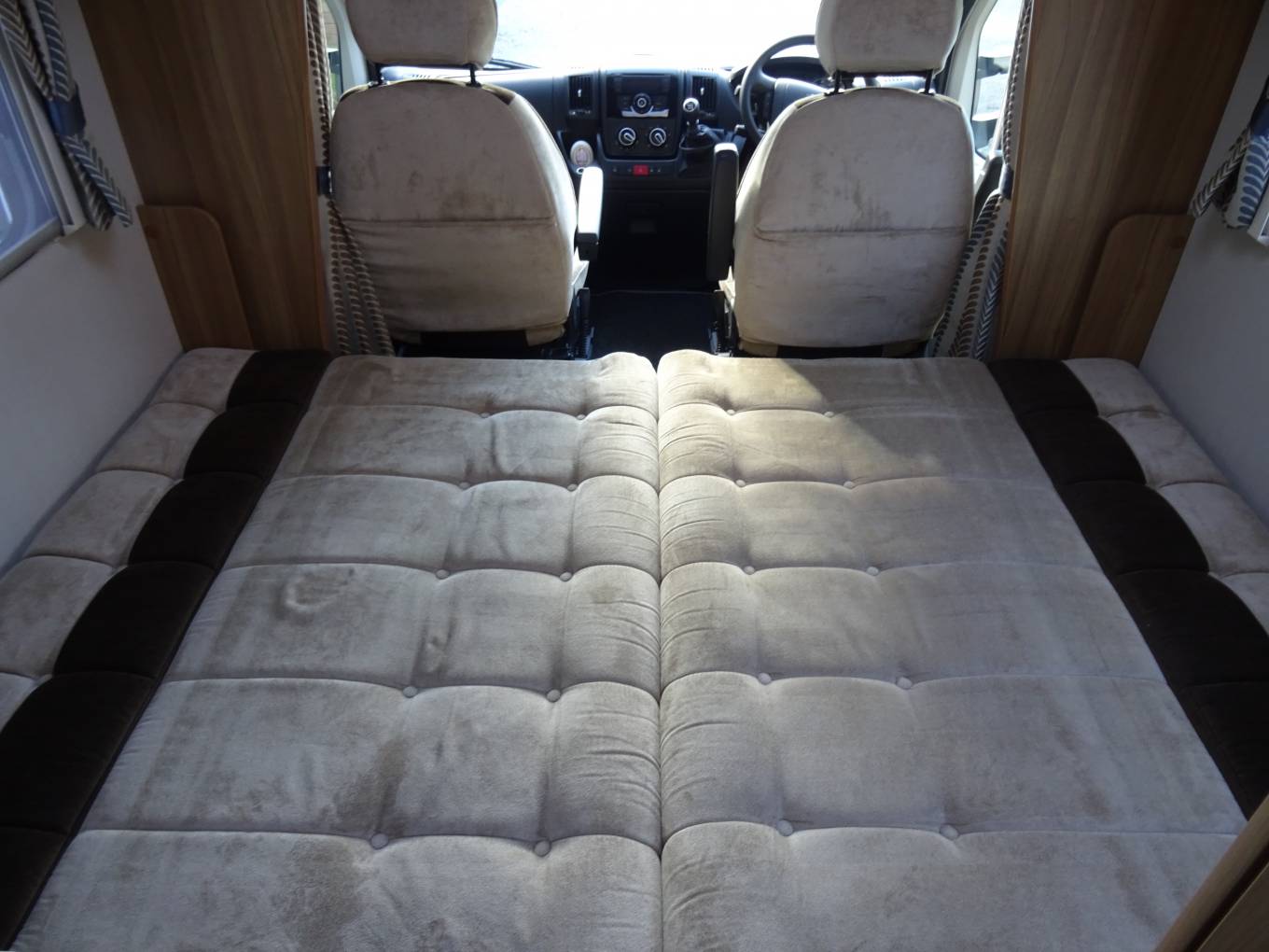 Both captain chairs swivel, making for a comfortable social area. There is more storage above the cab. There are 2 skylights in the living area and 1 in the washroom. It is fitted out with a Whale hot water and blown air heating system. It has a recently fitted bike rack suitable for electric bikes and has 4 new Michelin tyres. All in all a fantastic 2 berth motorhome offering more value and comfort than many camper vans. For extra photos and description please contact Jan and Paul by phone or email.