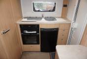 The Autoquest has a roomy kitchen with ample storage areas and lots of light, thanks to a fluorescent fixture over the sink and a good-sized rear window. There’s a three-burner hob and a small oven and grill unit conveniently located at around knee level. Despite the large sink, there’s ample workspace available.