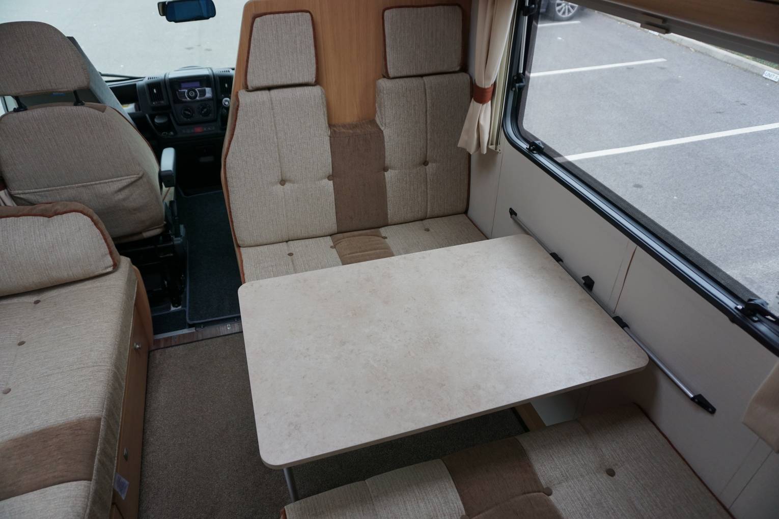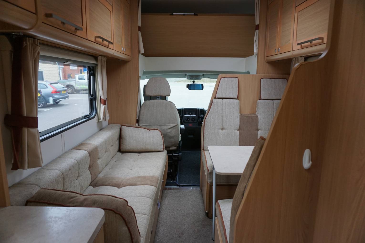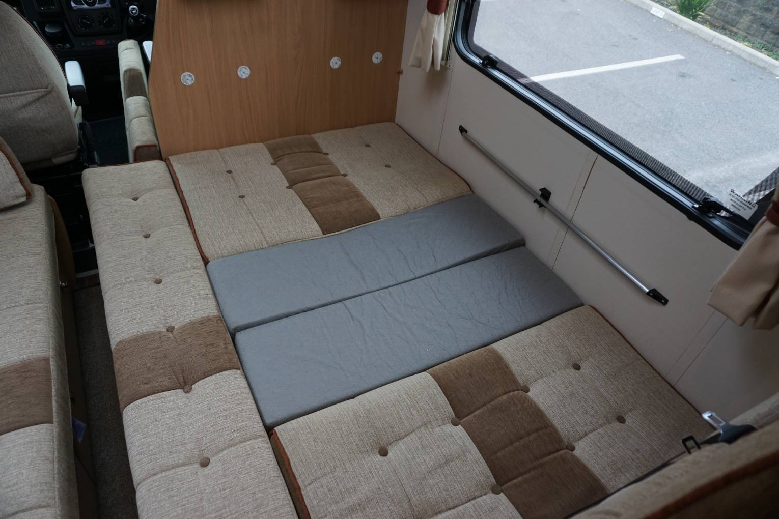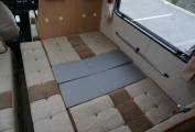 There are two separate beds in the lounge, which are made up using the settee to form a single bed and the dinette to form a double. The double measures 1.81m x 0.68m. Above the cab is a large bed, at 2.05 x 1.43m.