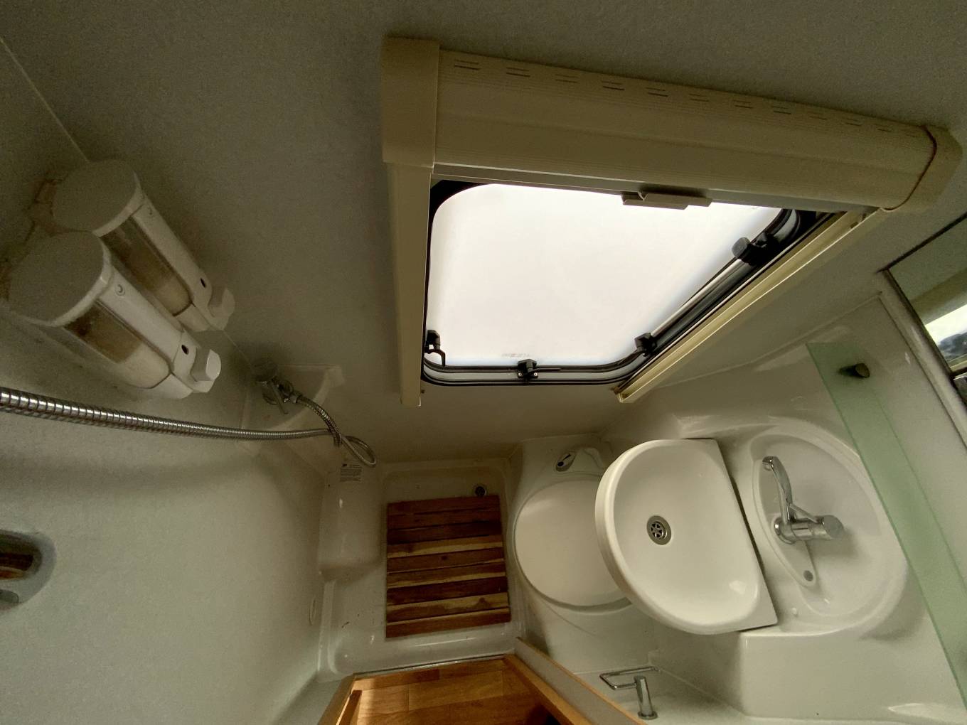 Washroom - Electric flush cassette toilet - Sink - shower enclosure.