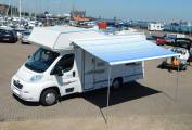 Outside you have a large Omnistor wind-out sun canopy, there is a Kampa Rally Air 260 awning, which attaches to the Omnistor giving a large 2.6m x 2.5m additional room, great for family dining. A bike rack that can accommodate 4 bicycles, a locker that houses the leisure battery, it has a roof mounted TV aerial and a Solar Panel.