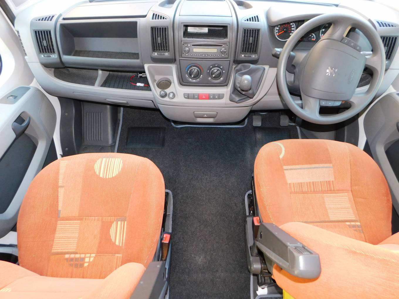 The cab has privacy curtains, a CD Tuner with steering wheel mounted controls, 5 speed manual gearbox, 3 x 12v power sockets, swivelling passenger seat, electric windows, mirrors and remote central locking.