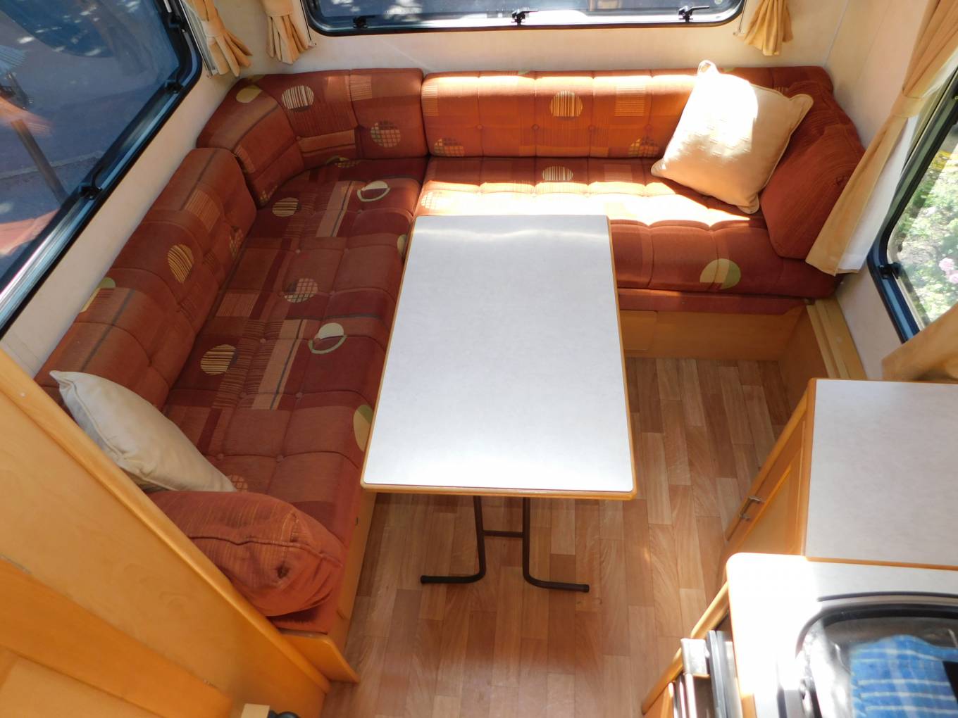 The L-Shaped rear lounge is bright and airy with large windows and a sunroof, this area converts to a large double bed in the evening.