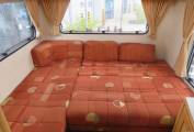 The L-Shaped rear lounge is bright and airy with large windows and a sunroof, this area converts to a large double bed in the evening.