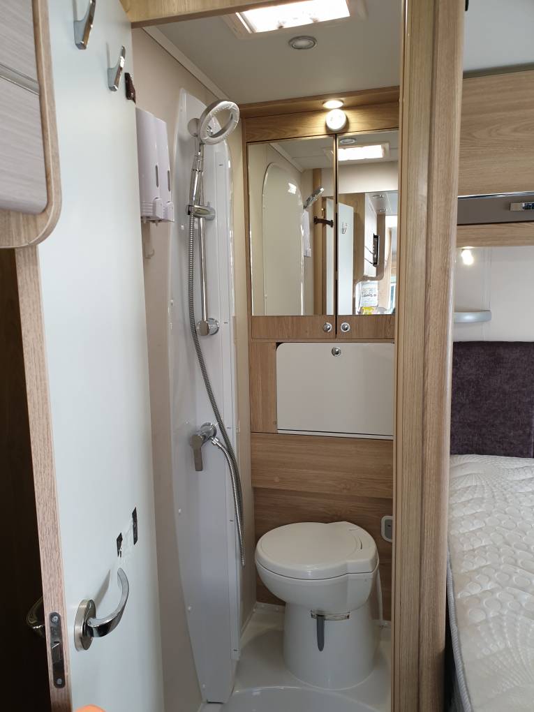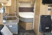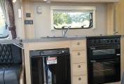 is a Dometic fridge with freezer, a sink and a microwave. The front lounge and
