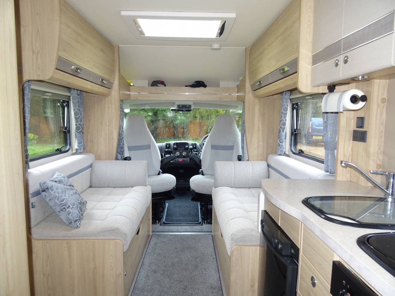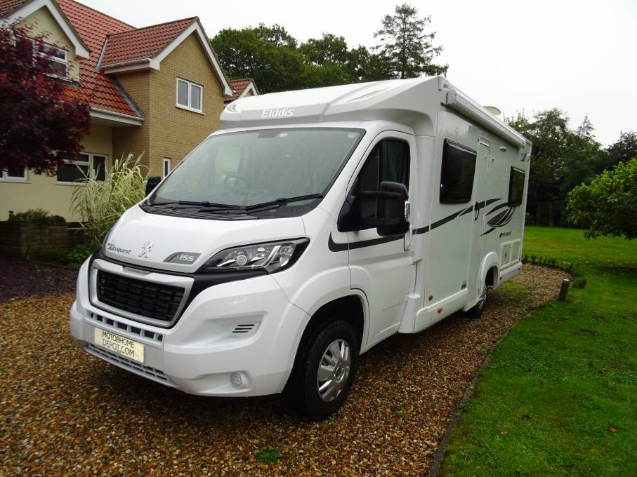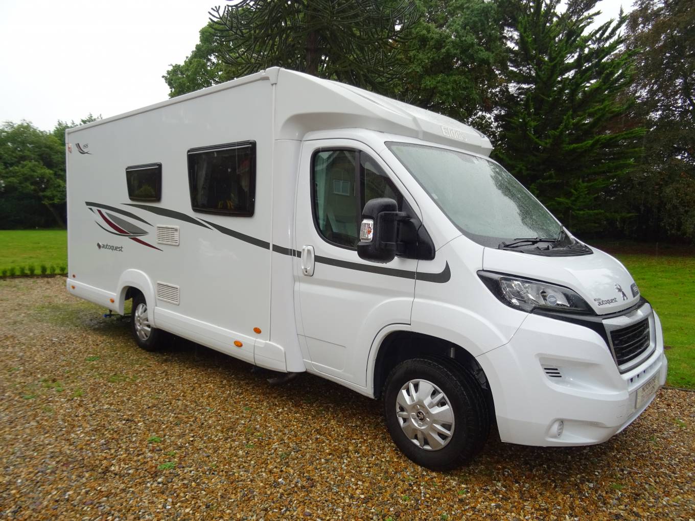 Pleased to present this lovely example of an Elddis Autoquest 155 2017 4 Berth with only 5,237 miles. Located in Bury St Edmunds area. Built on a Peugeot chassis with 2.0 litre diesel engine, 6 speed manual gearbox, with 3500 kg weight making this motorhome suitable to drive on a standard licence. On entering the motorhome straight in front you have a well equipped kitchen area consisting of oven/grill, 3 gas ring, and a good size work top with a fridge freezer. Both front seats swivel making the front dining area a really nice area to relax in. This area also makes into a good size double bed with 2 fold away forward facing belted seats for travelling under the bench seats. Moving to the rear is a fixed French double bed which offers ample storage underneath when lifted up with its assisting gas struts. Adjoining is a wet room style wash room with a fold down sink and sky light ventilation. Other great features Bike rack, cruise control, cab air con, spare wheel, tow bar.
