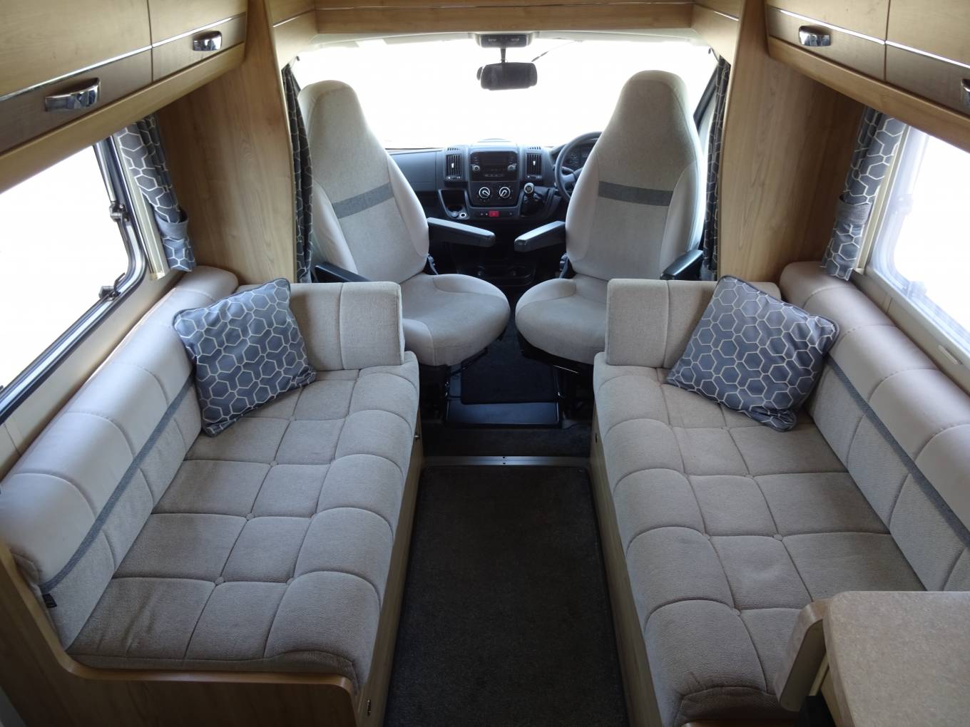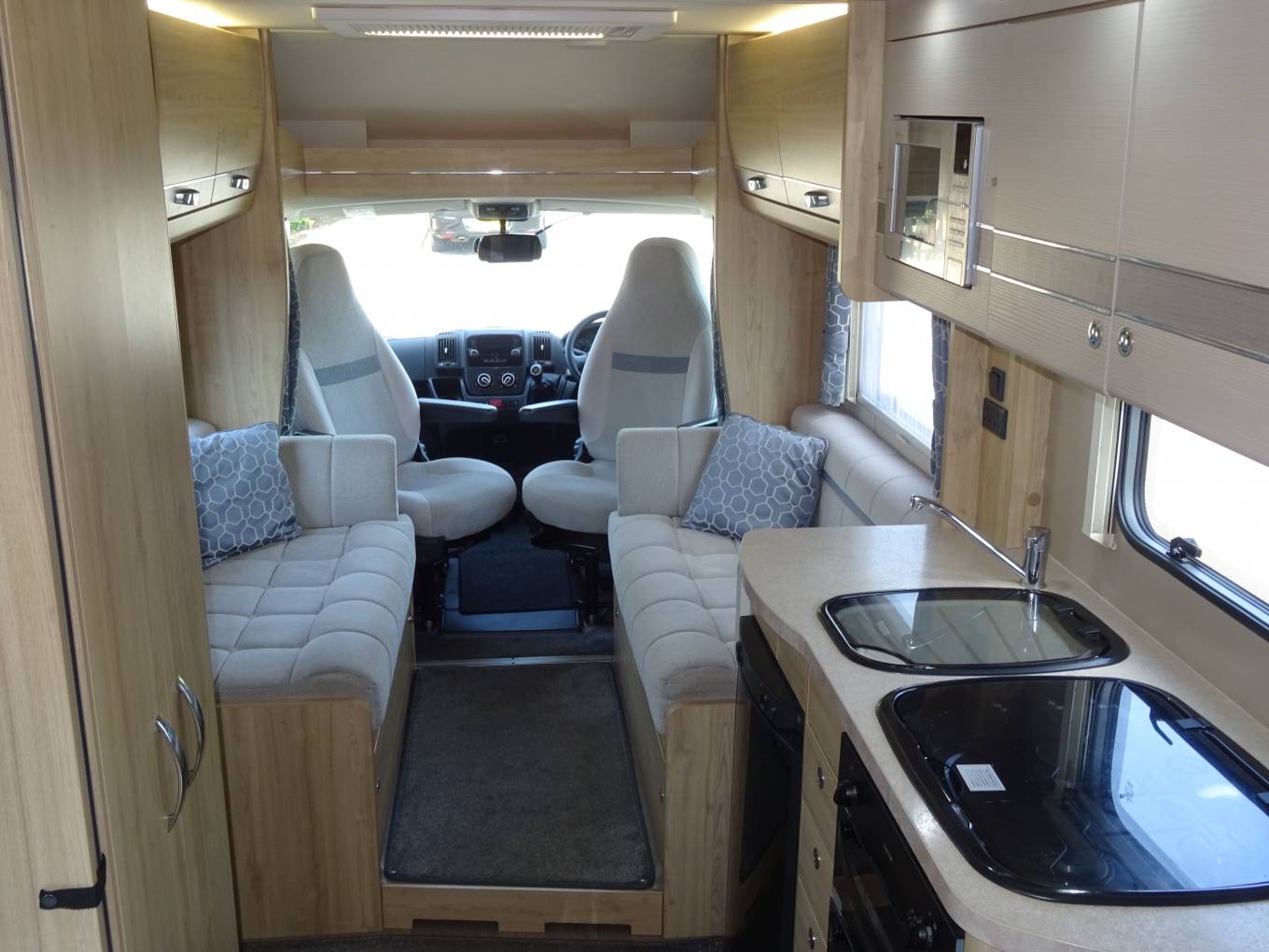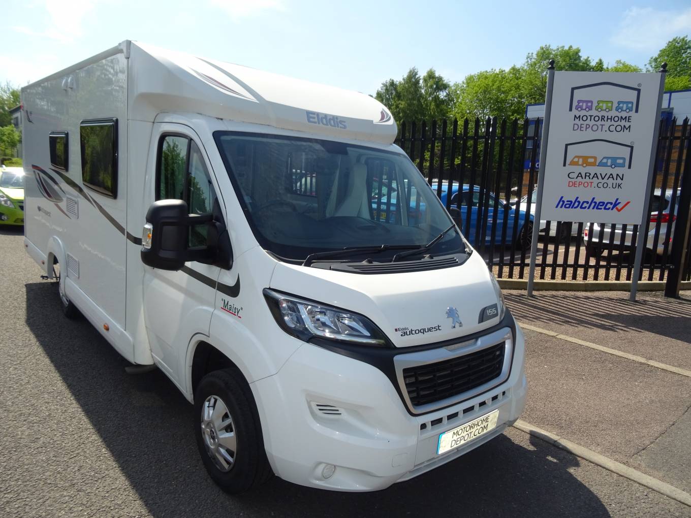 Welcome to the sale of this 2017 Elddis Autoquest 155 based on a 2.0L Peugeot Boxer with 6-speed manual gearbox. The main feature of this 155 is its rear French bed with generous storage both overhead and underneath. Adjacent to the rear bed is a large wet-room complete with toilet cassette, mixer shower & a sink that fold down from above the toilet cassette. To the middle of the motorhome is a well equipped kitchen with a 3 ring gas hob, oven & separate grill, fridge/freezer, sink with mixer tap and microwave. At the front of the vehicle is a bright lounge area made up of 2 bench seats and 2 front swivel seats. These bench seats convert to 2 additional belted travelling seats and a large double bed, accommodating 2 sleeping berths. For further details or photos please contact us and a member of our team will be happy to help.