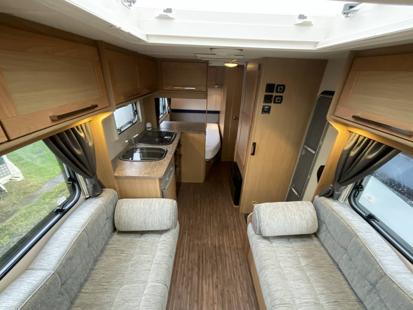 Here at Motorhome Depot Stoke on Trent, we are delighted to have on offer a 2011 edition of the Elddis Autoquest 155. This Sussex caravans 4 berth, 2 belt dealer special motorhome is based on the popular Peugeot chassis with the 2.2 litre diesel engine with manual gearbox and is in fantastic condition for its year. Starting at the rear, we have the French bed which includes great storage options both above and below the bed itself. Adjacent to this is the wet room which includes swivel cassette toilet as well as the shower controls. Just outside the door we have the vanity basin with a large mirror. Moving forwards to the fantastic spacious kitchen we have the 3 burner gas hob, grill, oven, handwash basin and the 3 way fridge. The wardrobe is of very generous size and also houses the TV ariel. The spacious feeling lounge has 2 comfortable side benches as well as the drivers and passengers swivel seat will provide ample seating options and will convert into an additional double bed if required. This low milage motorhome is certainly one not to be missed, please contact our sales team for further assistamce.