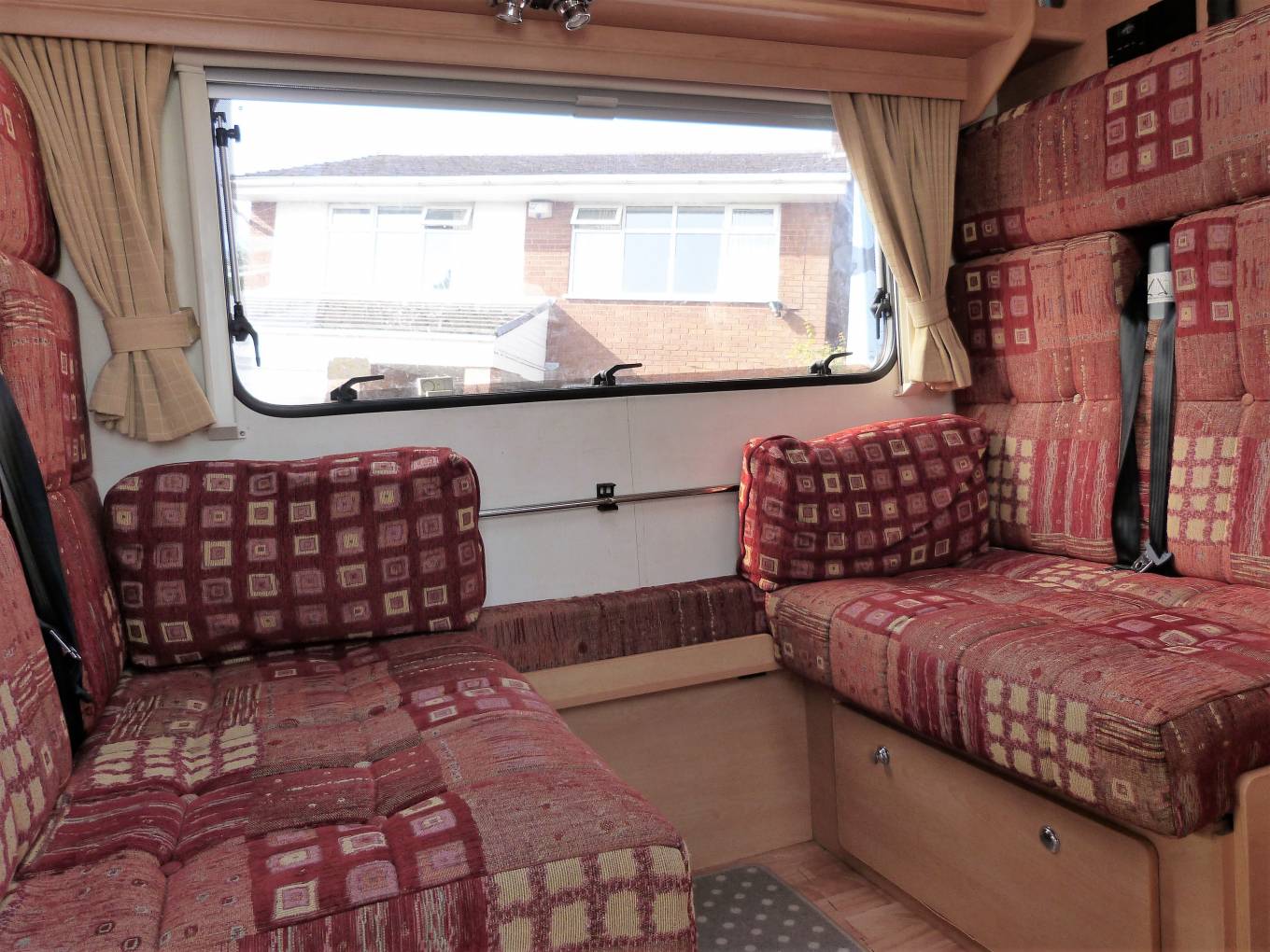 Call with any questions 01423 609985. This 2005 Elddis Autoquest 160, is a great family motorhome. It has 6 berths, with bunk beds on the nearside, rear washroom; centre dinette with double dinette area; large overcab, 6 seatbelts, good service history and sits on the smallest footprint I have seen for a 6 berth at 6.10 metres or approx. 20 feet and cab be driven by anyone, as the weight is 3400kg. It is in good condition. This coachbuilt motorhome is built on a Peugeot Boxer chassis, has a 2178 cc diesel engine matched to a 5-speed manual gearbox and 61,148 miles no about average. The rear washroom is generous in size, with toilet, sink, and shower attachment. Opposite are the bunk beds, the lower of which can be raised to create a garage area capable of holding bikes and can be accessed externally. The kitchen is well equipped with a cooker that has oven, grill, 4 gas burner hob, plus fridge, freezer. The double dinette is extensive and light, with large windows allowing plenty of natural light to enter. There are 4 full seatbelts in this area, 2 forward facing and 2 rear facing, so carriage of 6 people, of all ages, in this motorhome is assured, Up front there are the normal features you would expect, the passenger seat swivels and 5 speed gearbox. The overcab bed lifts to create extra headroom. The extra pictures show off all its features which include large roofbox, TV, 3 x 240V sockets when generally there are 2, MOT until August 2021. This is a lovely family motorhome, in good condition and should be seen at the earliest opportunity, with viewings by appointment near Bolton. Part Exchanges welcomed on this vehicle, for further information and photos please call us on 01423 609985 quoting reference 13598.