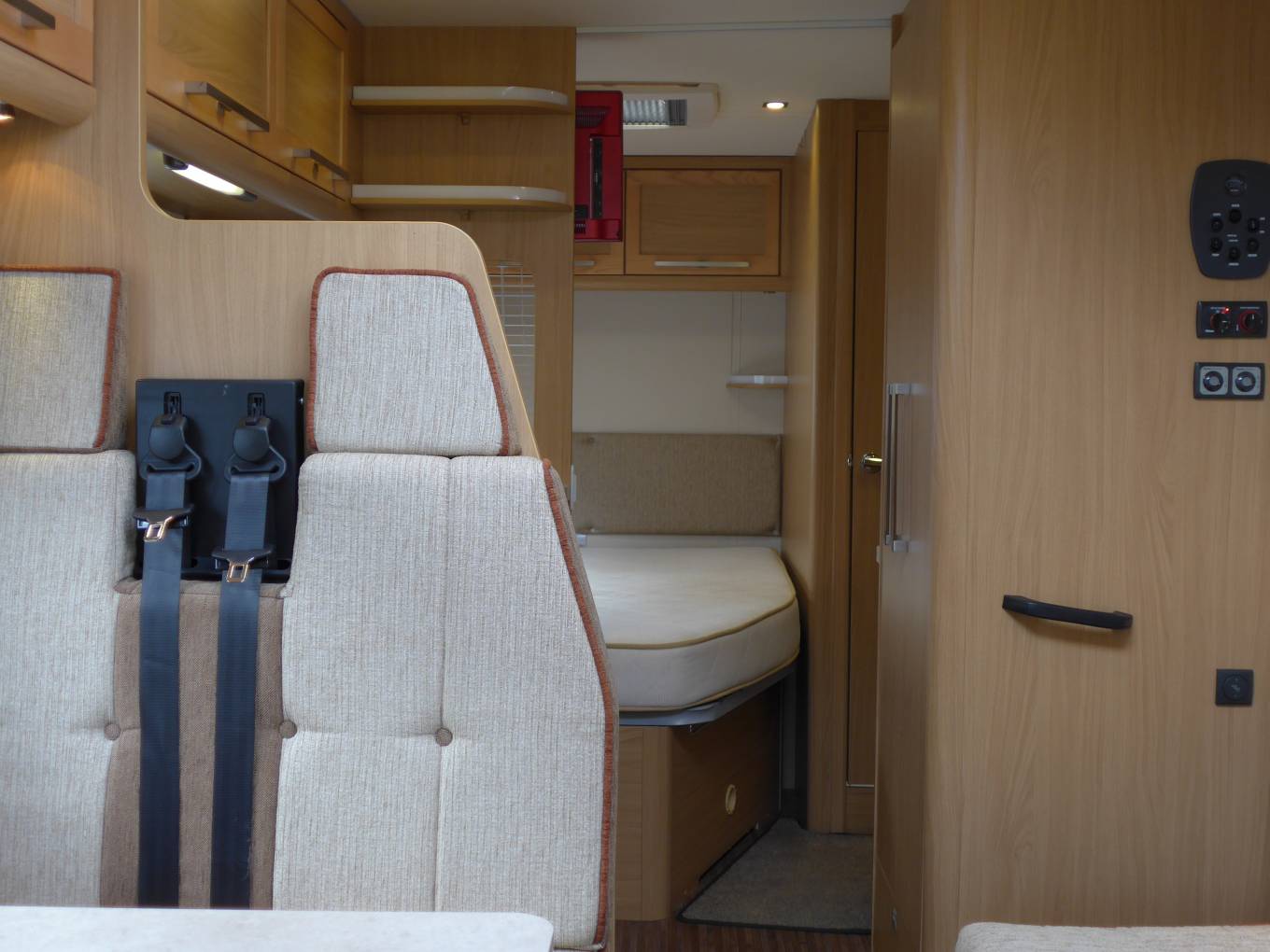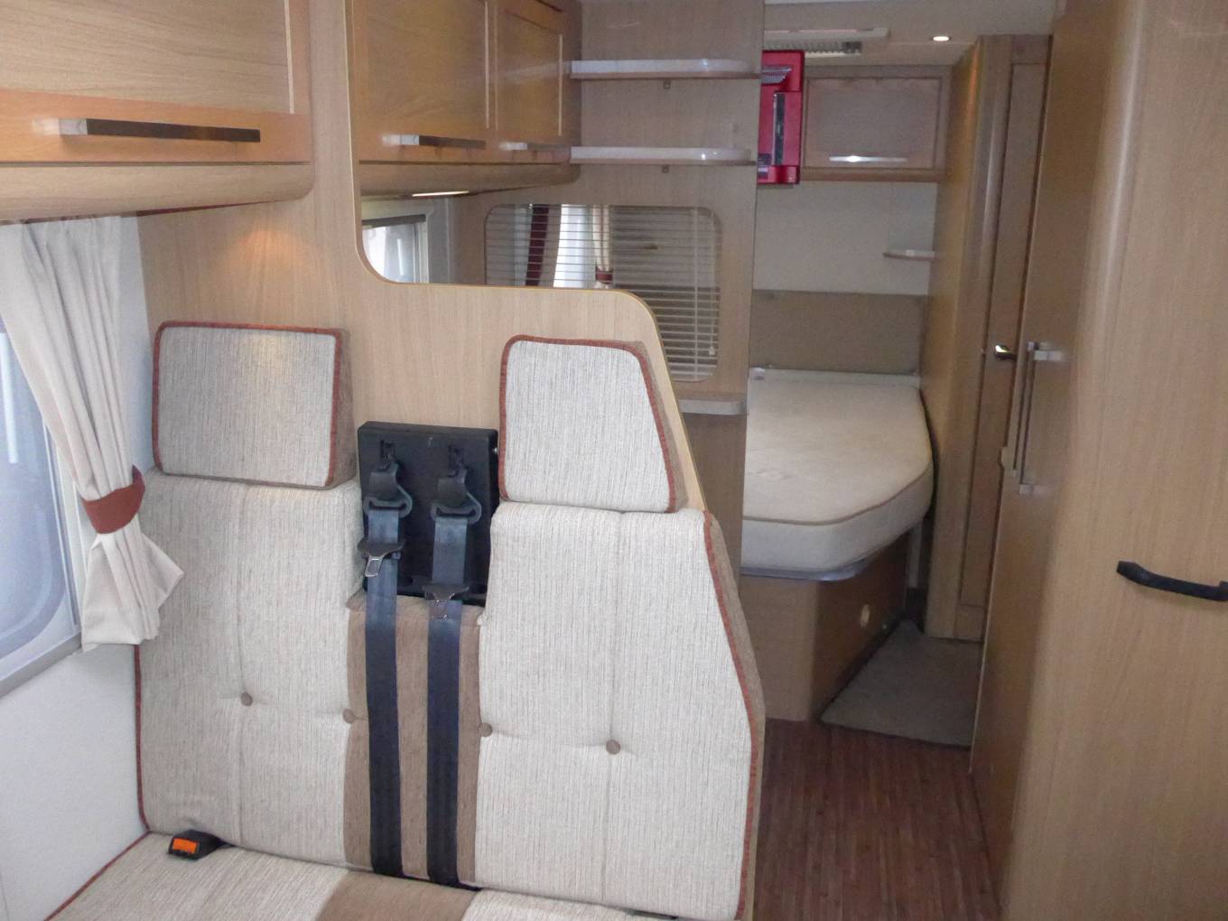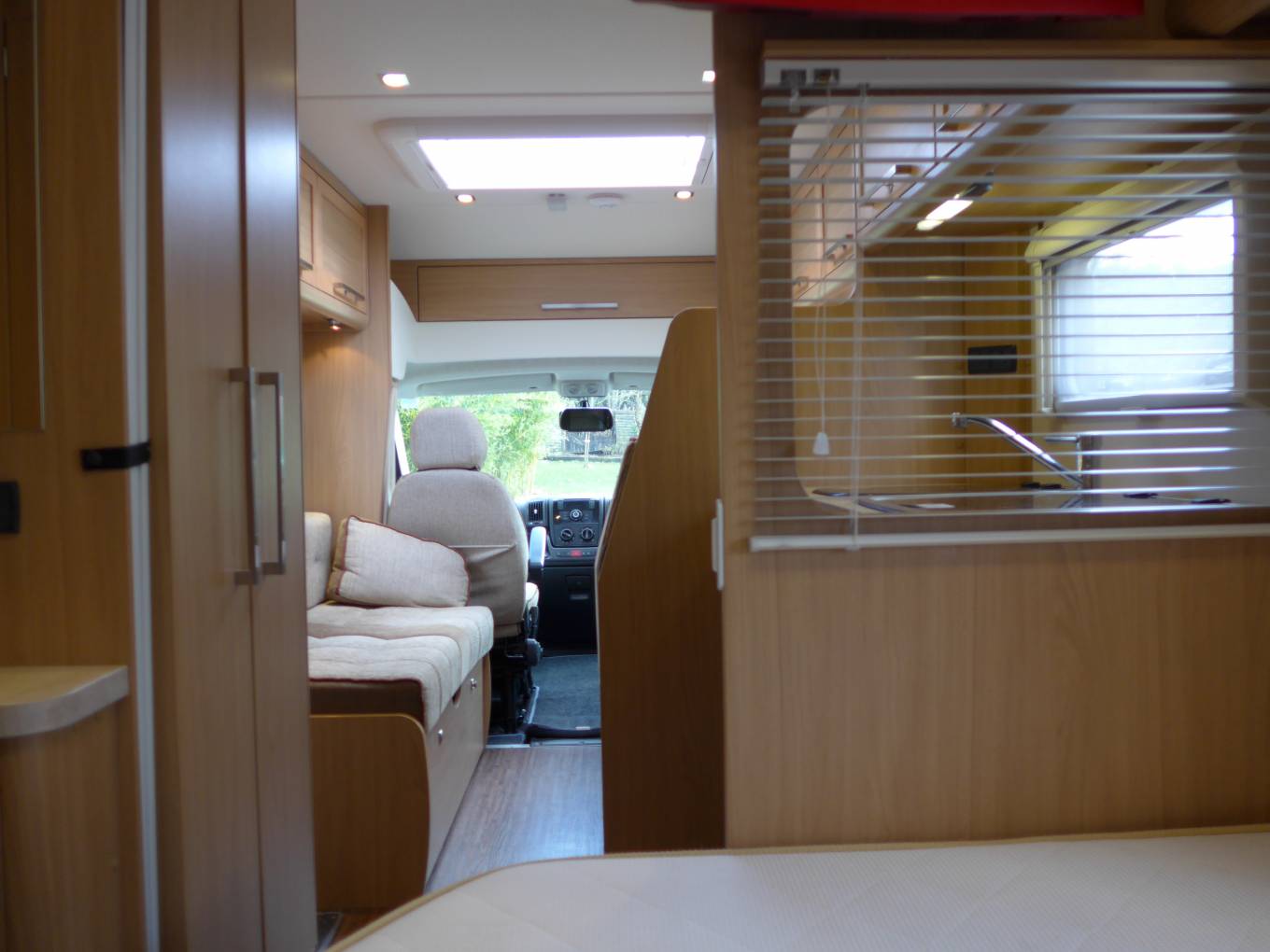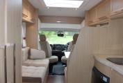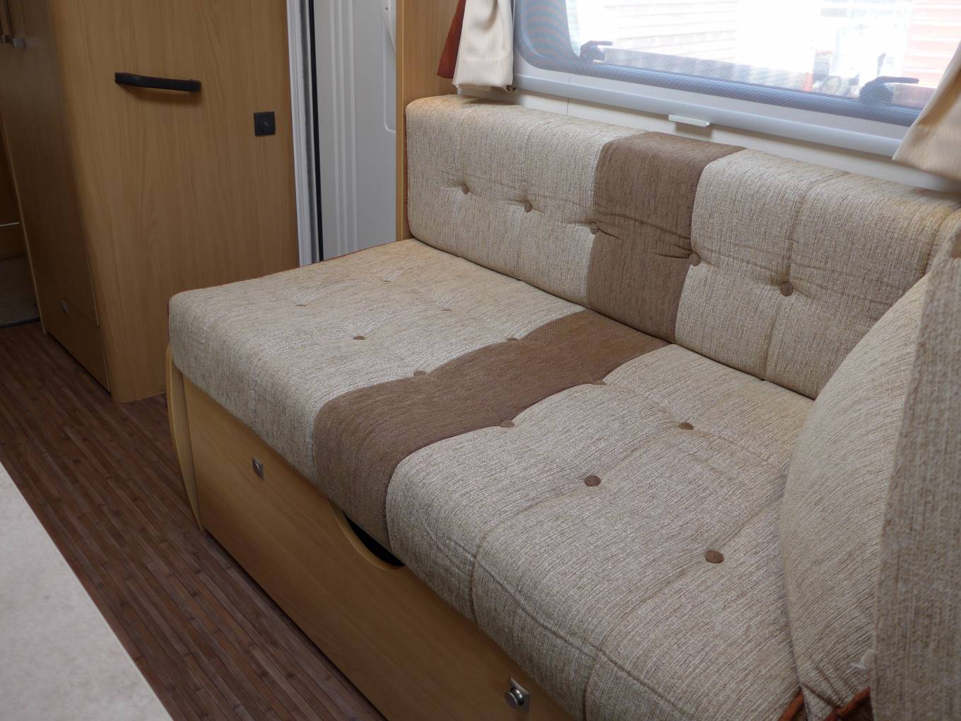 Layout comprises a Cab area with two swivel captains chairs, Centre Dinette with two more Travelling seat belts, side Sofa with Storage underneath. Dining for up to 6 adults with an and adjustable dining table. This area converts to a double bed.