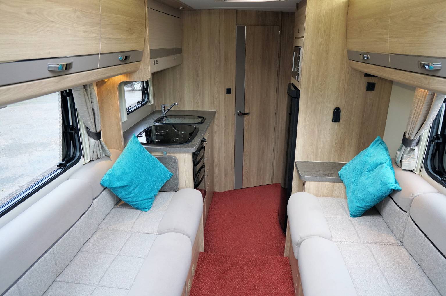 For sale we have a 2018 Elddis Autoquest 175, Explorer Edition, 2-Berth, 2-Seatbelt, End Washroom, Low-Profile Motorhome. Based on the 2.0 litre Peugeot Boxer with 6-speed manual gearbox, with cruise control, reversing / rear-view camera and cab air conditioning. This is a one owner motorhome with full service and habitation check history that is in fantastic condition. When you step into the motorhome, you will find the large washroom at the rear that has a separate shower compartment, Thetford cassette toilet, basin with mixer tap and large wardrobe. The kitchen has a hob with 3 x gas plates and 1 x electric plate, separate grill / oven, sink with mixer tap, microwave oven and large 3-way fridge with separate freezer compartment, complimented with plenty of worktops and power points. The lounge / dining area consists of two large settees that convert to a large double bed or could be utilised as two single beds. Both front seats swivel into the area giving plenty of space for 6 people to dine in comfort. There is a curtain that separates the cab from the habitation area and comes with a full set of blinds fitted to the cab windows. The present owner has fitted a full carpet to the motorhome that has been done very well and the unused removable carpets are also available if you prefer the original look. There is plenty of storage both above and below throughout, has the winter pack fitted for all year use and blown air heating will keep it cosy throughout. Externally there is a wind-out awning, bike rack, external BBQ point, shower point and roof mounted solar panel. The grey side panels and alloy wheels complete the look of this superb condition, low mileage motorhome that really needs to be viewed to be appreciated.