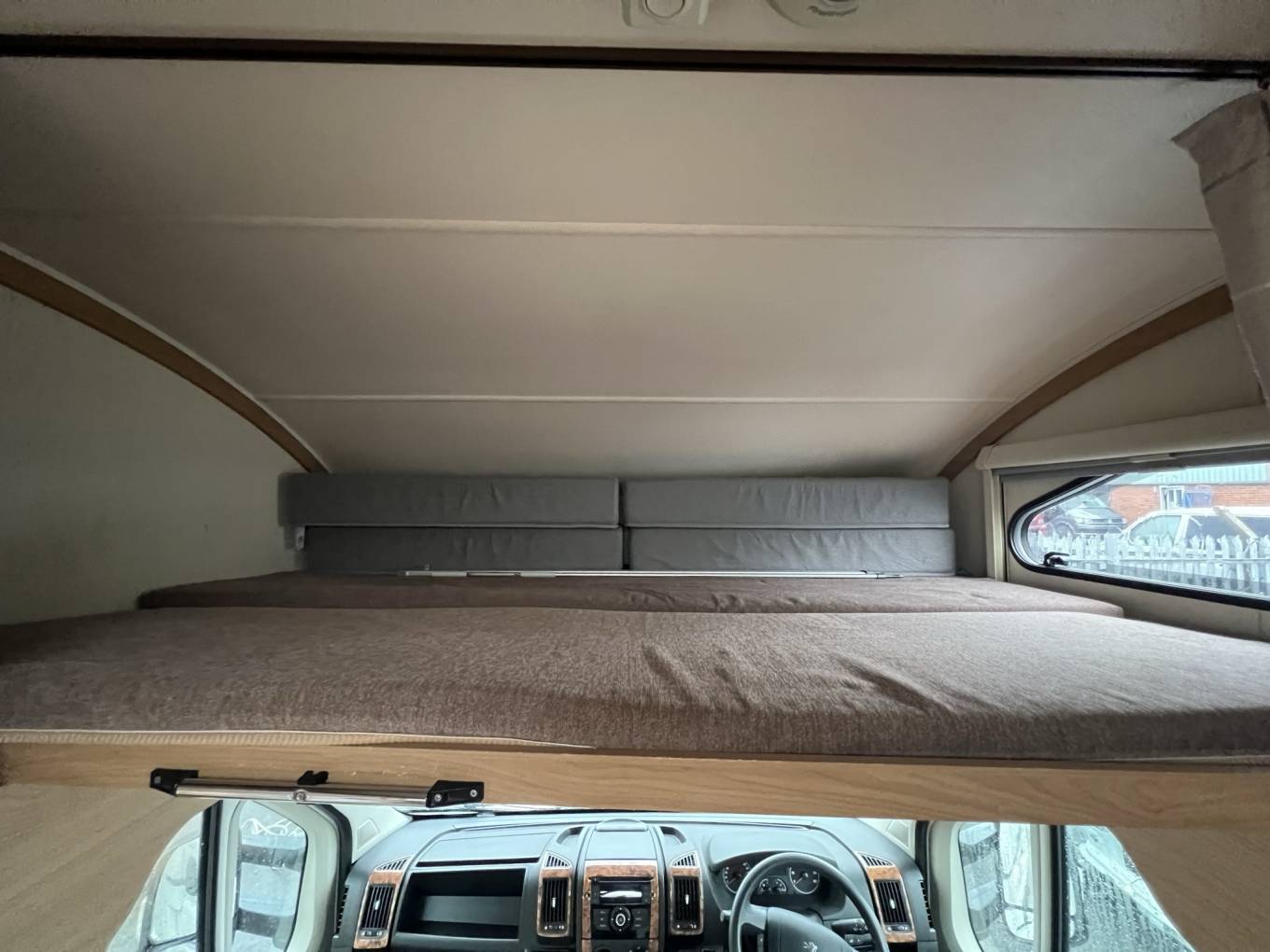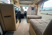 This Elddis Autoquest 180 is a 6 berth, 6 seatbelt motorhome. Behind the drivers position and alongside the kitchen you will find the double dinette which can seat 4 people for eating and travelling with seatbelts on all 4 seats, 2 forward facing and 2 facing the rear. This are also converts in to a double bed making up 2 of the 6 berths. A further 2 berths can be found in the large overcab area. Here you will find another large double accesible via a removeable ladder. The overcab bed also has a window on each side.