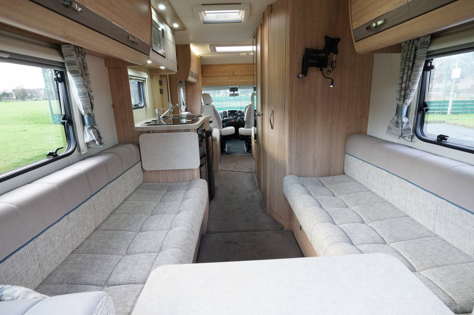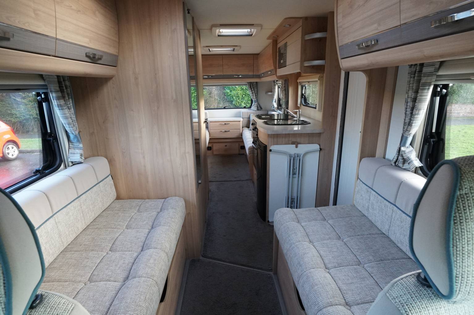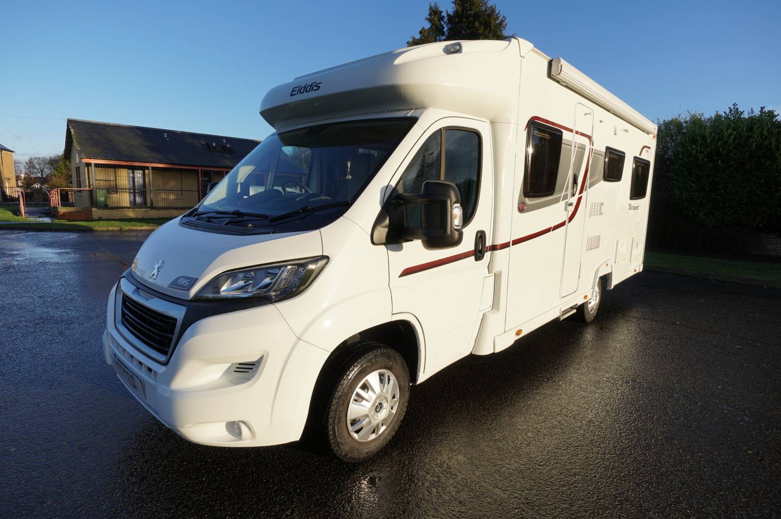 This 2016 Elddis Autoquest 195 is a light and spacious low-profile, 4-berth motorhome and is in lovely condition throughout. Having 4 travelling seats, it is ideal for either a couple or a family of four with plenty of options for dining and lounging. One owner and covered less than 10,000 miles, it has a full service history and annual habitation checks have been conducted from new. The cab is based on the Peugeot Boxer with a 2.2 HDI 130 BHP engine with a 6-speed manual transmission. In the back you step into the motorhome and on the left is a lounge / dinette area with a 2 seat and 3 seat bench and both Captains seats swivel into the area. A double bed is made up using the two benches and below the bench seats are the two rear, fold out, forward facing travel seats. The kitchen area has good storage above and below with sufficient work tops and has a 3-burner gas hob, sink with mixer tap, 3-way fridge with freezer compartment and a microwave. The washroom has a Thetford cassette toilet, wash basin with mixer tap and shower with curtain. To the rear is the large lounge area that converts into a huge double bed or can be used as two single beds. There is loads of storage space to be found in this area with the TV bracket and connections to the external aerial and Road Pro satellite system positioned on the forward right hand bulkhead. 2 x 240V sockets were fitted as an extra from new in this area giving you plenty of outlets for your laptops and iPads etc. Externally you will find a Fiamma awning above the entrance door complete with electric step, reversing camera and in the gas locker you will find a 240V socket. A tracker is fitted and has been paid for until May 2021. Please get in touch if you are interested in the motorhome and I can send you a full portfolio of photos and information.