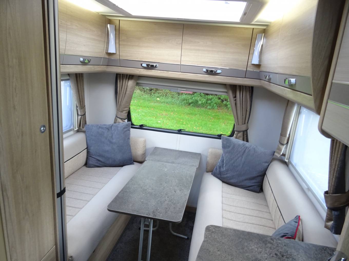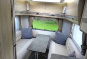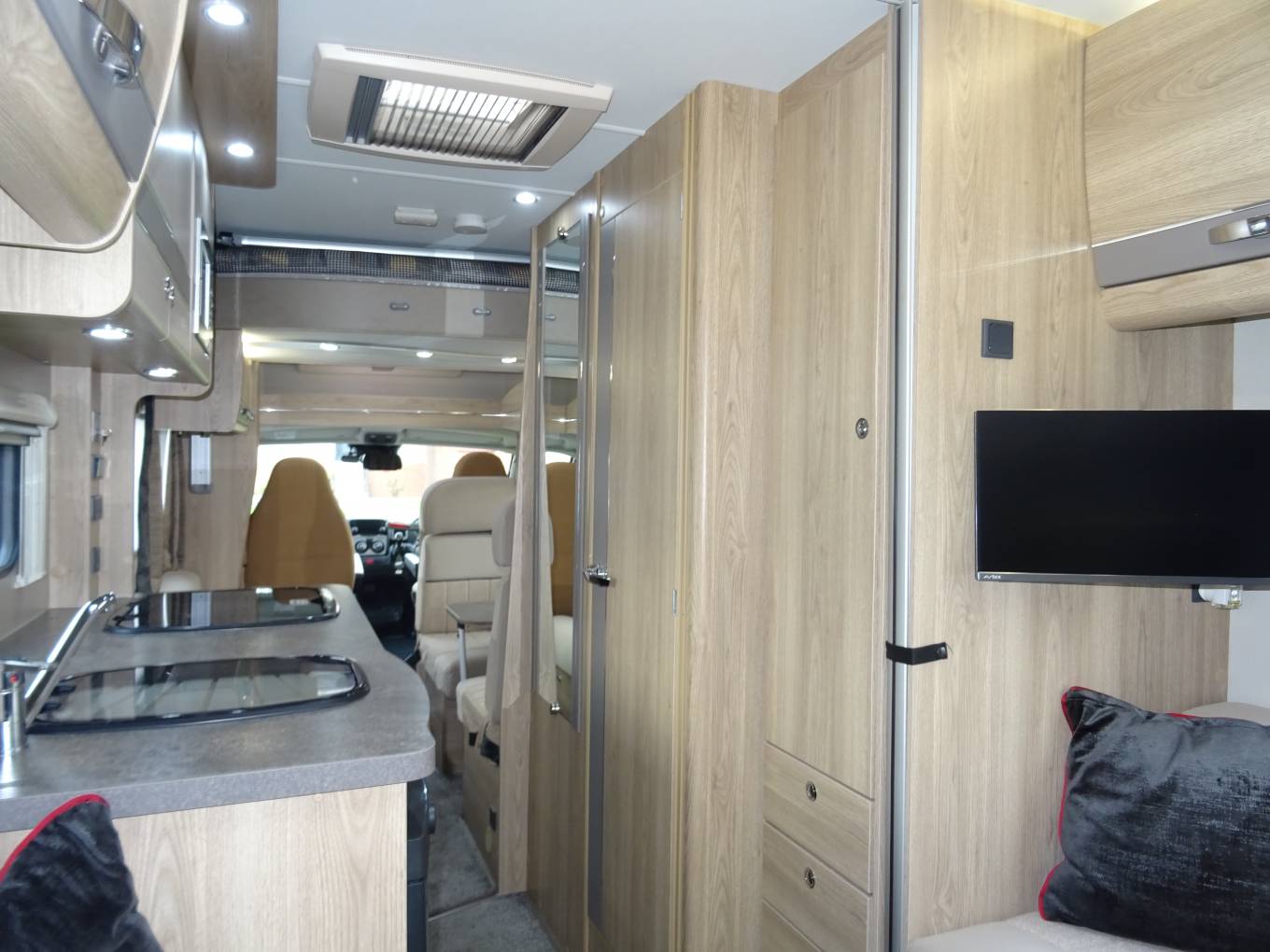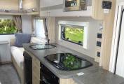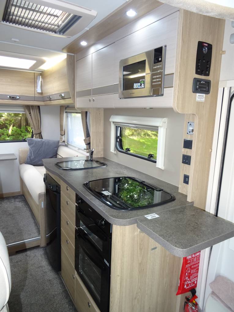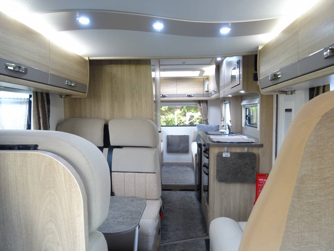 With a rear lounge and a central dinette providing 2 separate seating areas this is ideal for families or a couple wanting a space to dine & then to retire to the lounge. Sleeping arrangements are made up of both seating areas converting to double beds and an electric drop-down double bed above the dinette. The central kitchen is equipped with hob, with 3 gas burners & 1 electric element, grill, oven, microwave & fridge. Opposite lives the bathroom with shower. In addition there is plenty of storage space with cupboards and large storage space underneath the seating areas.This model is the Platinum edition which boasts exclusive white gold platinum exterior paint with graphics & numerous extras including the DPS 360 camera system, Cat 1 alarm. Other extras include an awning, exterior gas point, exclusive upholstery combination, solar panel, diamond cut alloy wheels, tow bar, TV, Satellite system, Teleco Teleplus X2/39U Directional Aerial, Habitataion Air Con and the list goes on.