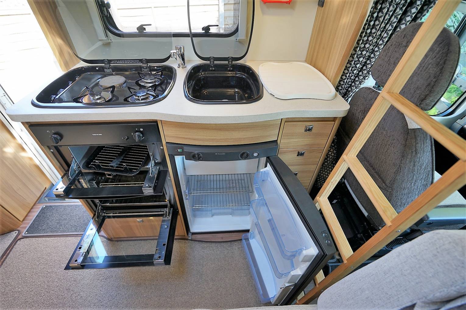 burner, full cooker with Grill & Oven, a microwave, a sink, and a fridge