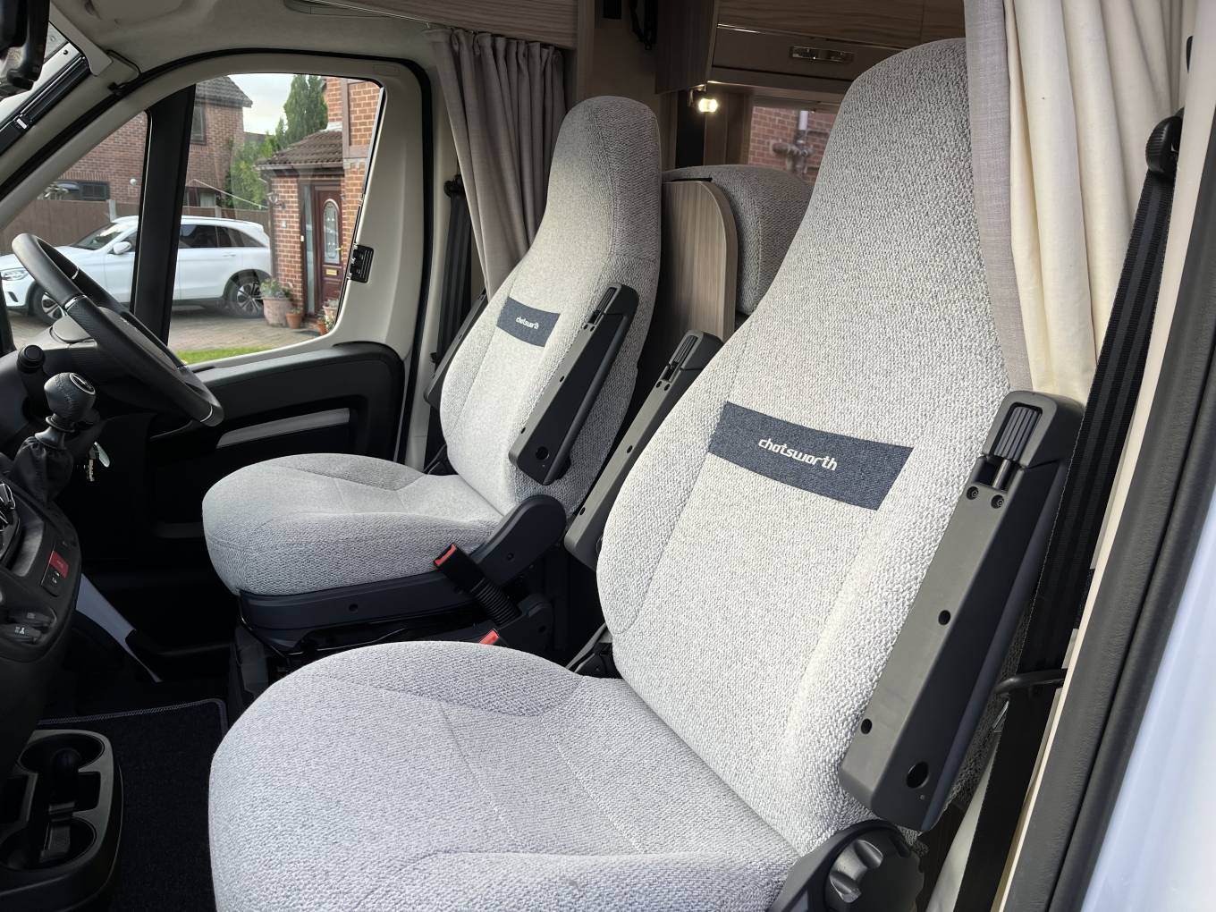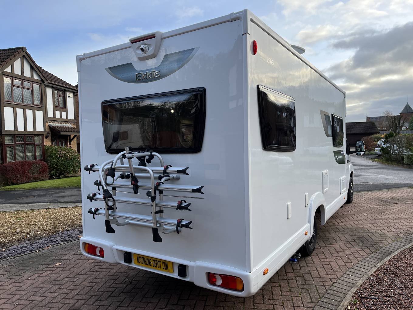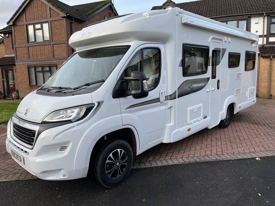Elddis Chatsworth 196, a Beautiful 6 Berth Motorhome with End Lounge and Electric Drop Down Bed. This motorhome was registered in May 2022 with one owner from new, 2,692 miles and in excellent condition throughout. At the rear is the lounge which makes into a double bed, forward from this is the bathroom and a well equipped kitchen including microwave. At the front is the dining area, which also makes into a double bed and above this is the electric drop down bed. It comes with Cab Air Con, Cruise Control, 6 Seat Belts, Alarm, Rear Camera, DAB Radio, Alloy Wheels, Blown Air Heating, TV Aerial, Canopy Awning, Bike Rack, Solar Panel, Outside Shower and BBQ Point. It also comes with Gas Bottle, Mains Lead and 2 sets of keys. Available for viewing by appointment in Preston, call for more photos, videos and information.
