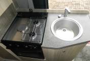 oven/grill, 2 gas burner & 1 electric plate, microwave, stainless steel