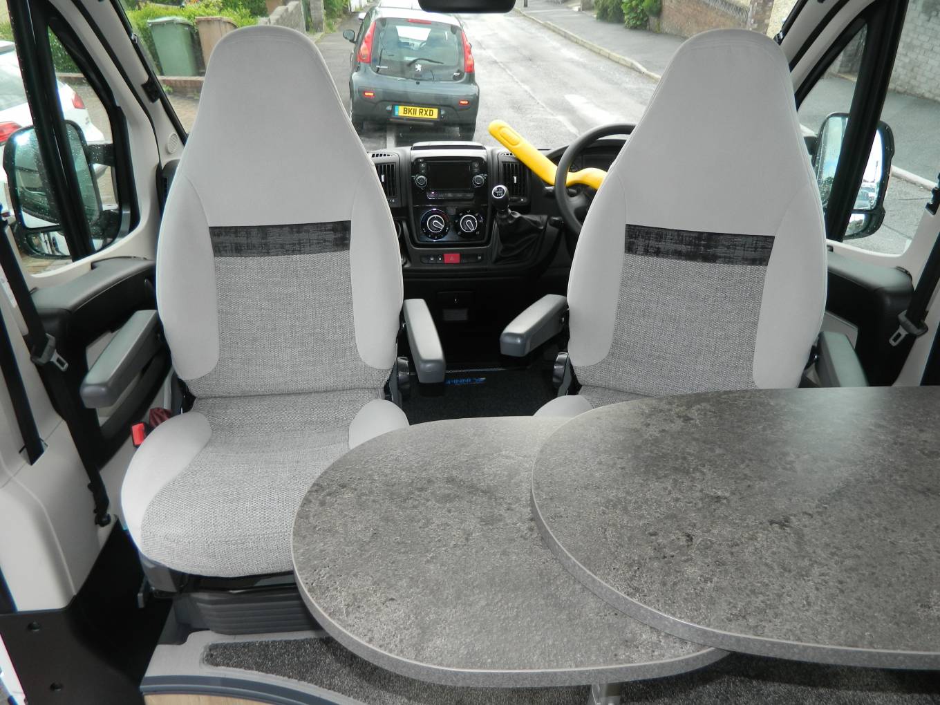 the twin seating areas. At the front you have two Captains seats that swivel to