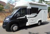 Additional specification includes Remis front concertina screen blinds, reversing camera, cab aircon, electric cab windows, large skylight, cruise control, DAB radio and outside includes Dometic awning, 2 bike cycle rack, 2 gas bottles, Thule electric entrance step and continuing the prestigious look and feel of the whole motorhome is the stylish black cab paintwork.