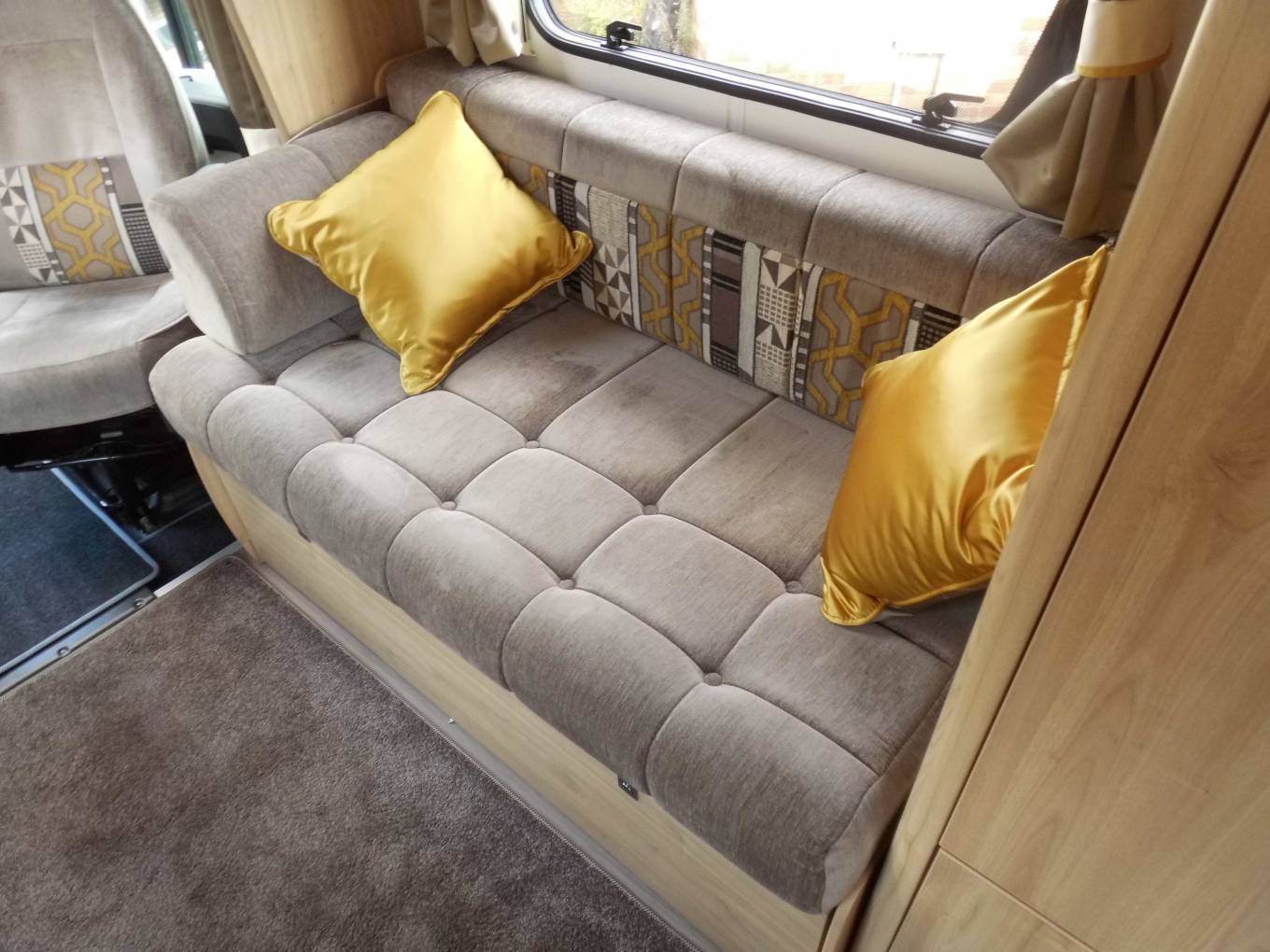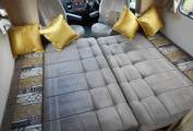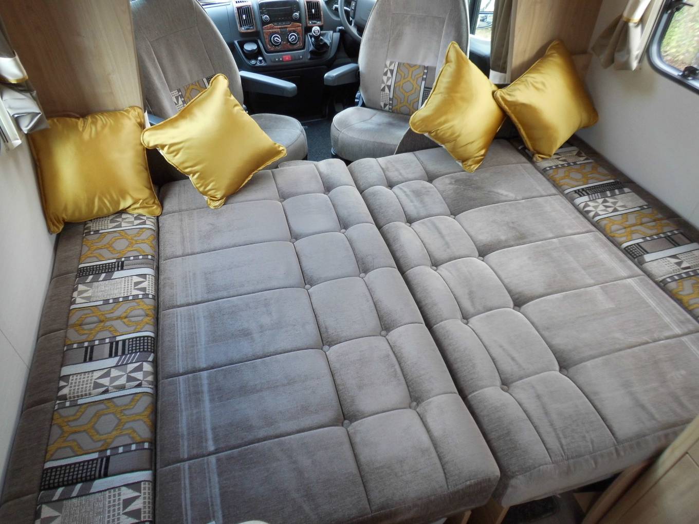At bedtime, you have two good sized comfortable singles. Use the swivelled cab seat squabs for additional length for your feet to accommodate anyone up to about seven feet tall. Alternatively pull the sofa bases out to meet in the aisle, flatten the backrests and a very generous double bed is created; you can both sleep either across or length ways.
