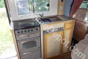 Opposite is the dining area for four people with removable table. The front facing double seat has two 3 point seat belts