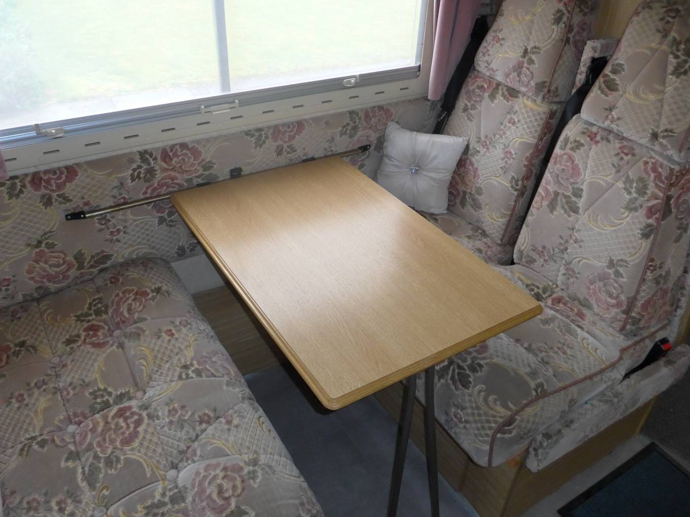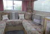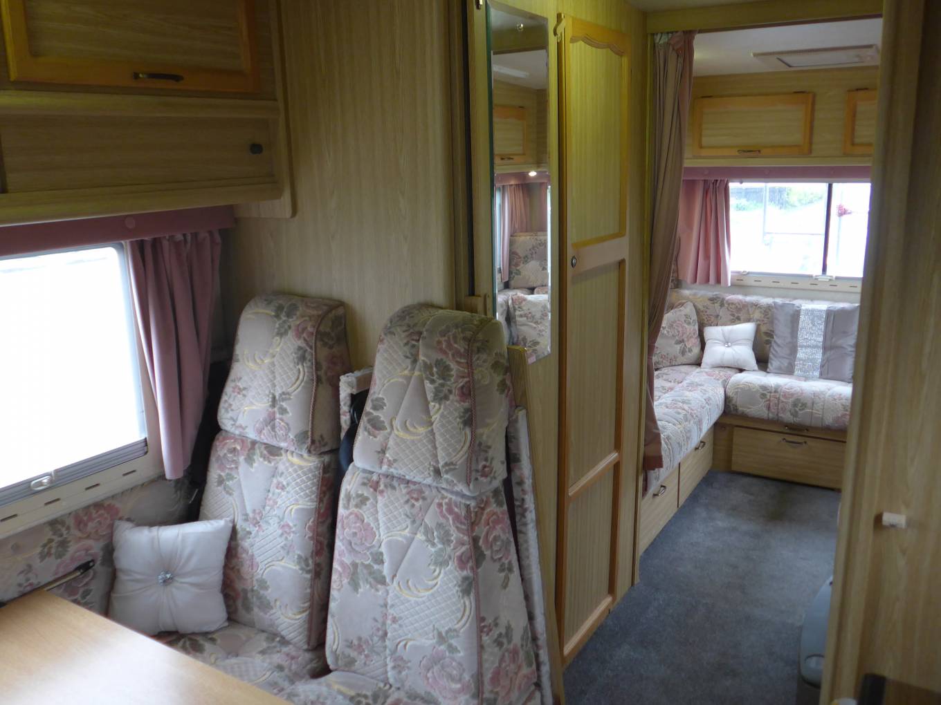 Double dinette with 2 x 3 point travelling seat belts. which converts into a second double bed, over cab double bed.