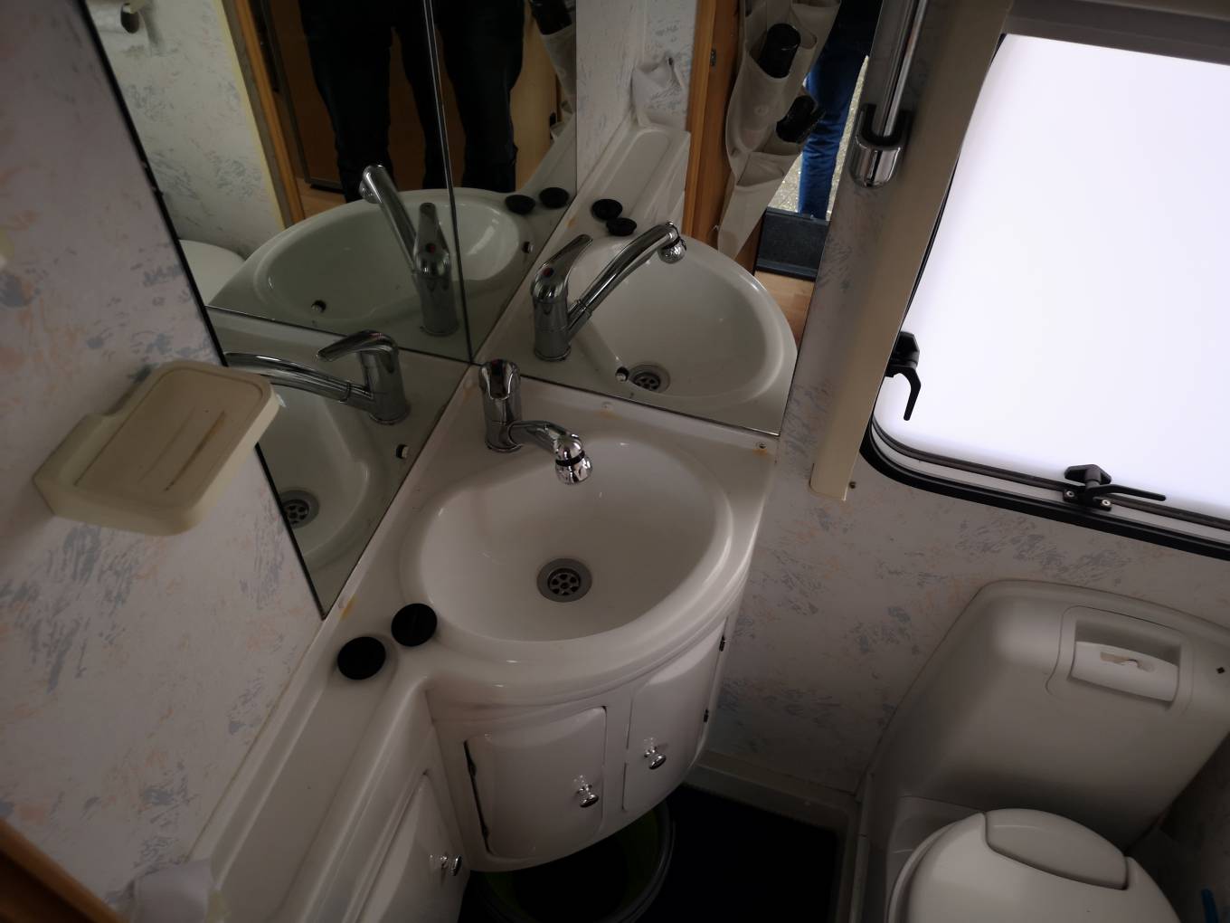The washroom is shiny and bright and is in keeping with the rest of the motorhome.