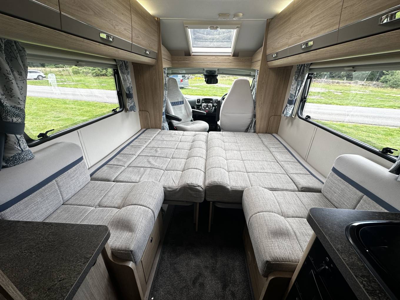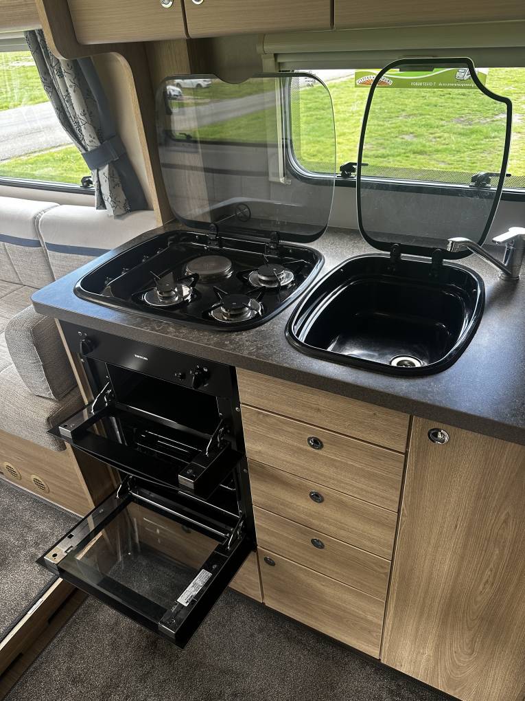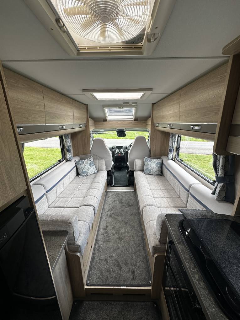 The vehicle is based on the excellent Peugeot Boxer chassis with 160bhp and a 6 speed manual gearbox. It is 7.20m long and weighs 3500kg meaning it can be driven on a standard car license. Cruise control and air con in the cab are standard items as are electric windows and height adjustable seats so you can expect a comfortable drive whether you are travelling locally or heading to the southern parts of Europe on an extended trip.
