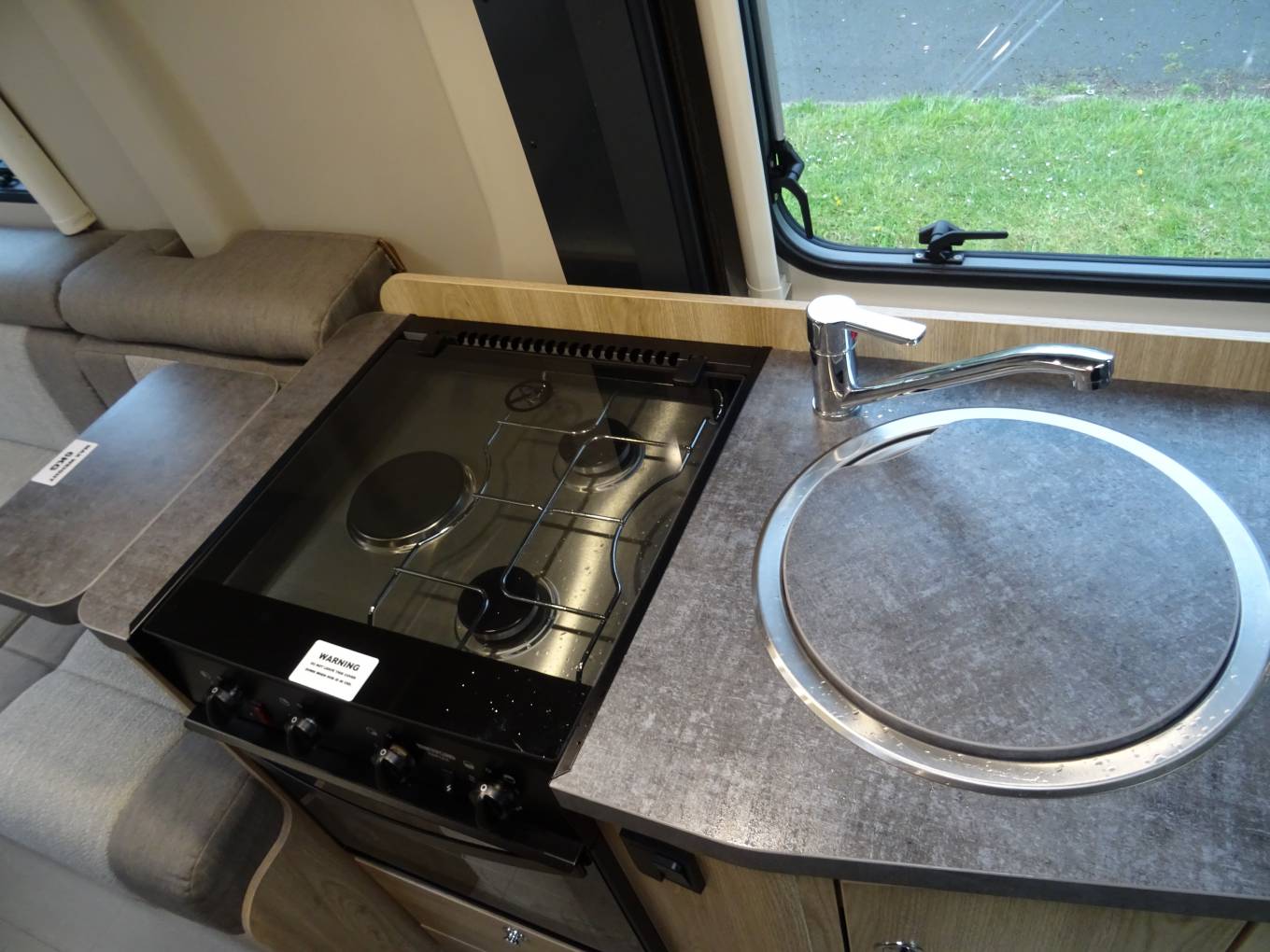 fuel hob, oven/grill, microwave, sink with hot and cold water, extendable work