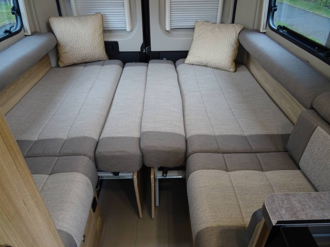 benefits from the popular rear lounge with opposite facing sofas, that easily convert