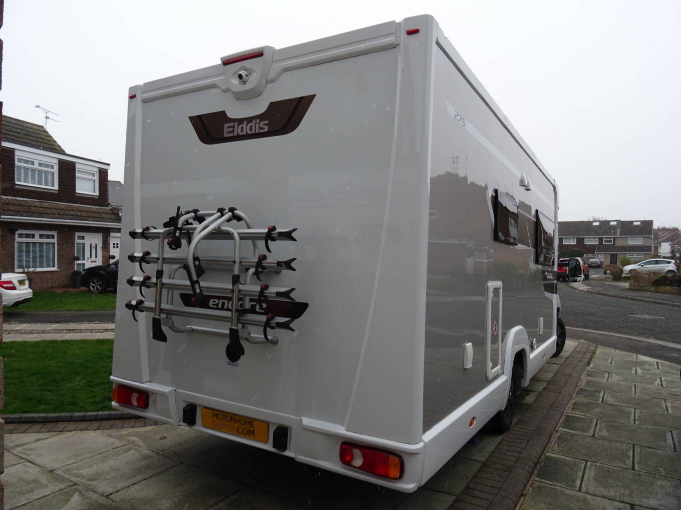 external gas BBQ point, wind break, bike rack with 4 rails, alloy wheels, windscreen cover, external shower