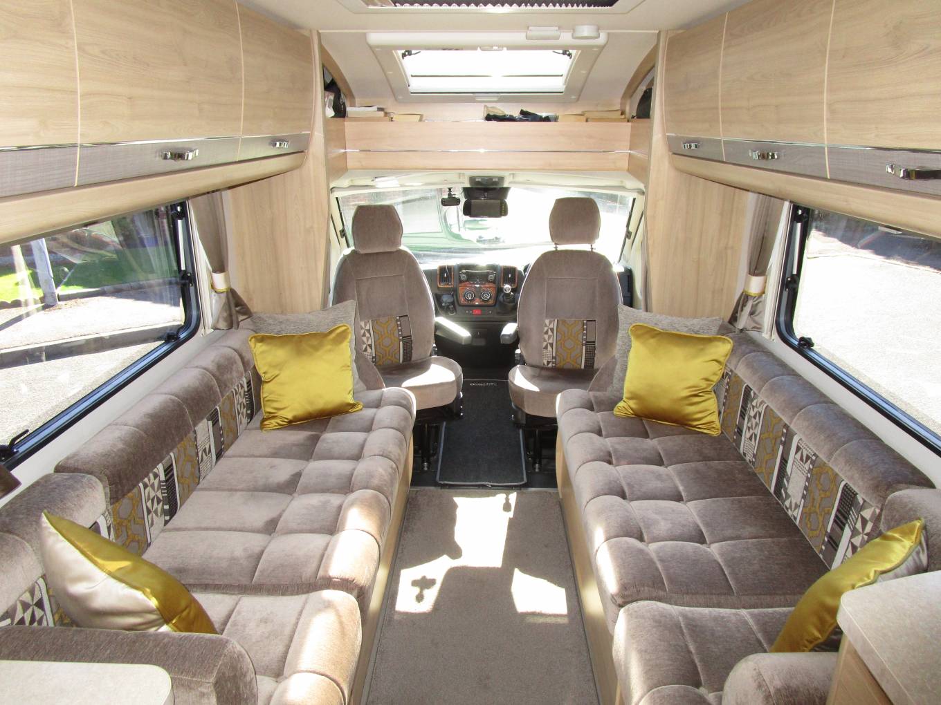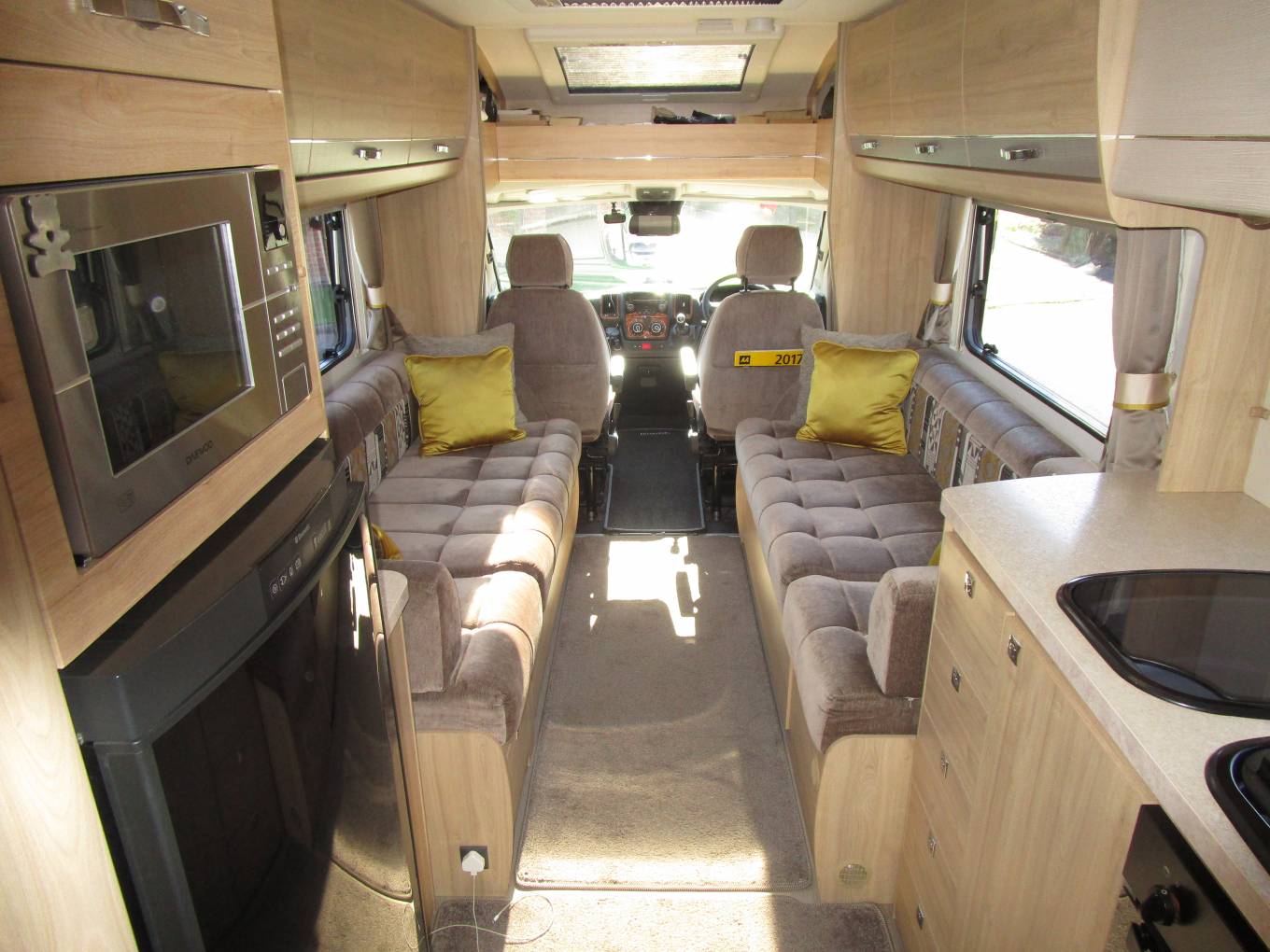Here we have a beautiful example of the Elddis Evolution 175, based on the 2.2 Peugeot Boxer with a manual gearbox. The 175 is the perfect vehicle for those looking for a little more luxury while still maintaining a relatively compact vehicle. The front lounge area is light and airy due to the overhead skylight and double aspect windows, the spacious side facing sofas can easily seat 6 and this can be raised to 8 by swiveling the two front seats, the front benches are also long enough to be used as two singles if needed or can be pulled together to create one huge double. Moving towards the rear is the kitchen area which is extremely well equipped with a large fridge with ice box, microwave, sink and full size cooker along with plenty of cupboards for storage. At the rear of the vehicle is a huge washroom and changing room with cassette toilet, hand wash basin and separate shower cubicle along with a large dressing space with full depth wardrobe. The standard spec is already generous on the evolution featuring a wind out awning and reversing camera and this particular 175 has also been upgraded with a towbar which was intended to carry a bike rack. Please contact me on 07572 398972 for more information or to request the extended picture file and video.This vehicle has a current up to date habitation check.