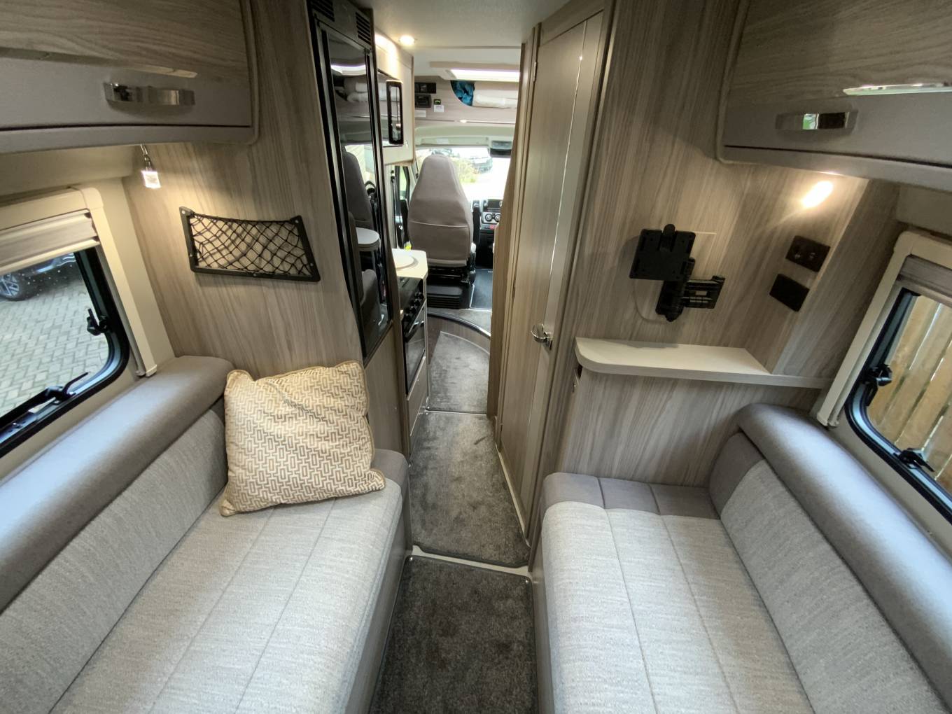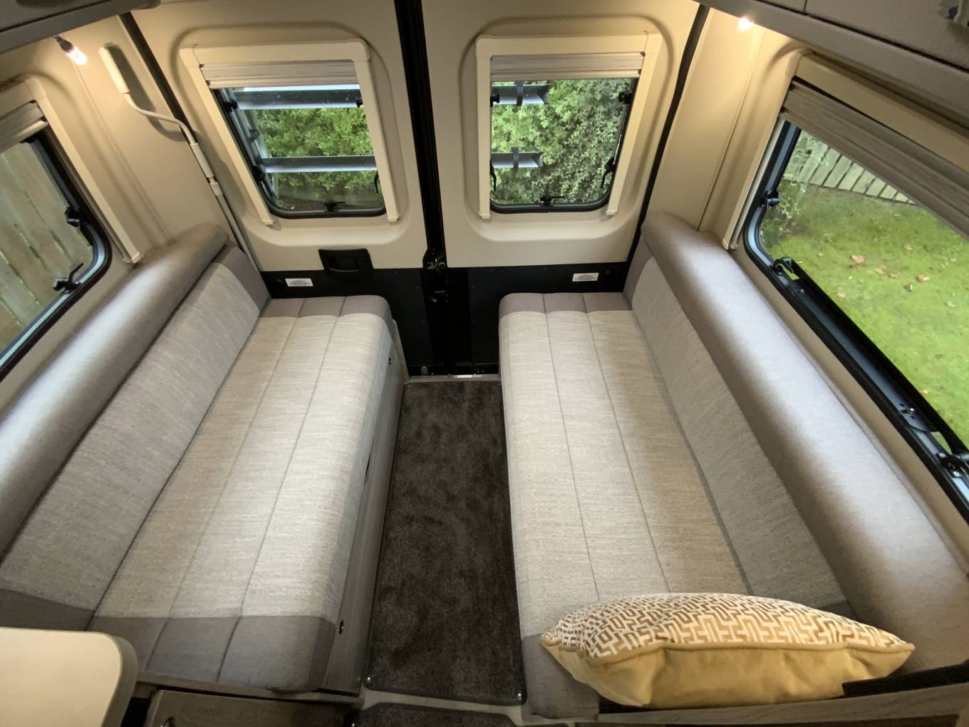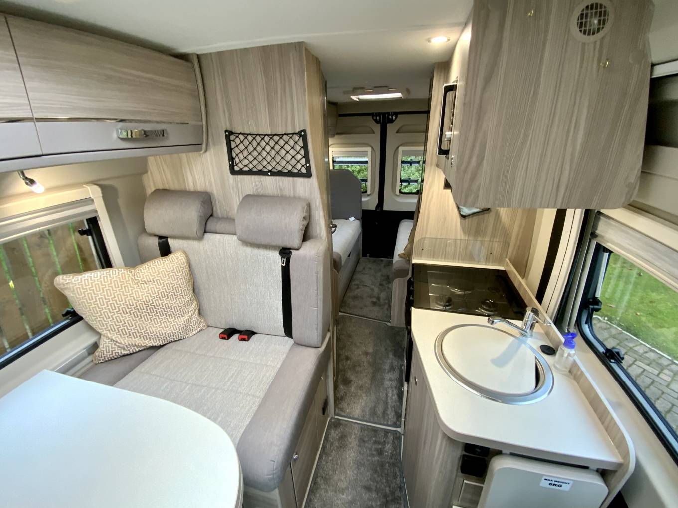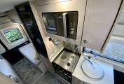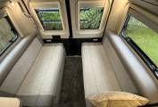 The CV40 features a Pullman-style lounge up front with two additional seatbelts, this can be made up into a single bed. The rear lounge can easily seat 4 and converts to a double bed- creating a flexible 3-berth campervan. The kitchen area is equipped with dual fuel hob, oven and grill, microwave and fridge-freezer. The spacious central wet room offers everything you need in a bathroom including a cassette toilet, hand basin and shower.