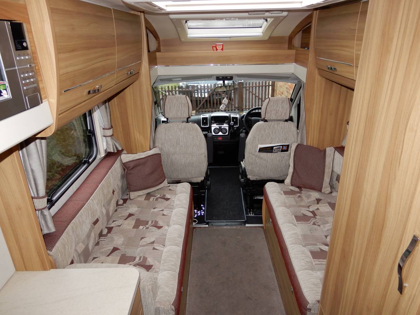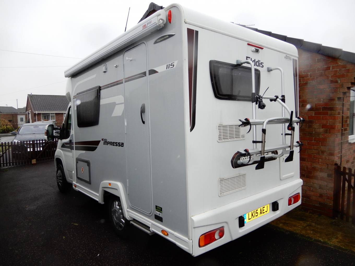 Here we have a great example of a 2015 Elddis Impressa 115 based on a 2.2 Peugeot diesel with a 6 speed manual gearbox. The main feature of this motorhome is its end kitchen which includes a sink with taps, full oven, fridge and storage cupboards. Just at the side of this you have your washroom where you have a sink with taps, a toilet cassette and a shower. Moving forwards into the living area you have two bench seats and also 2 swivel seats to allow for both more people to be seated and more comfortably. This motorhome comes in very good condition as you would expect and would be a great motorhome for any couple. For more information or the extended photo file please call or email Aston Marsh.
