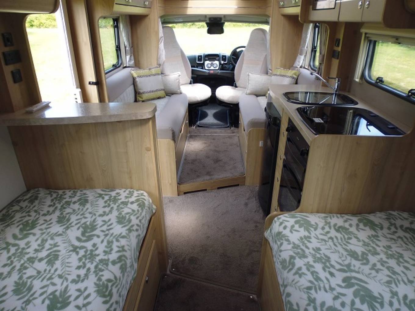 Near perfect example of an Elddis Impressa 185. This 2x fixed single bed layout is a four berth, four seat belt motorhome offering the best of both worlds with an ingenius fold down seat system that leaves the van feeling very spacious. With a lovely bathroom across the rear and a well equipped functional kitchen, this Elddis is perfect for couples or families. Based on the superb Peugeot Boxer with a six speed manual gearbox and cab air conditioning, this 130 bhp variant has covered only 3139 miles from new. Extras include a solar panel, reverse camera, tv and dvd, tv aerial and a microwave oven. Based in Kent.