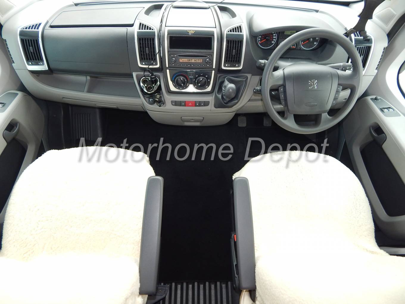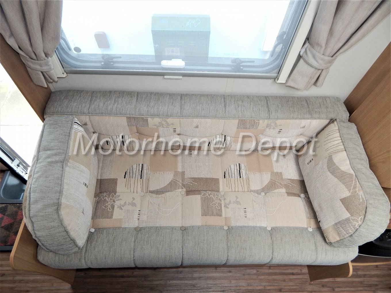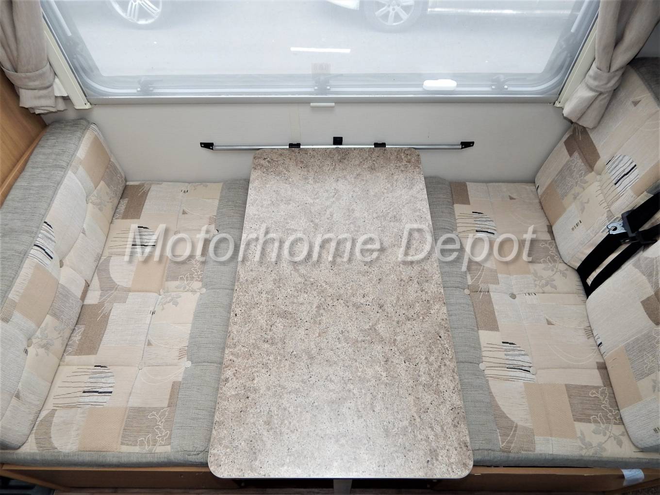 A lovely example of this Elddis Majestic 100 based on the ever popular Peugeot Boxer chassis it has a 2.0 Turbo diesel engine and a 5 speed manual gear box. It comes with a comprehensive service history including: 9 mechanical services the last 03/23 at 18k; 6 Habitation services the last being 05/23. The cab benefits from: power steering; multi function steering wheel; electric windows front; electric mirrors; single CD head unit; reverse camera screen; Heosafe deadlocks.