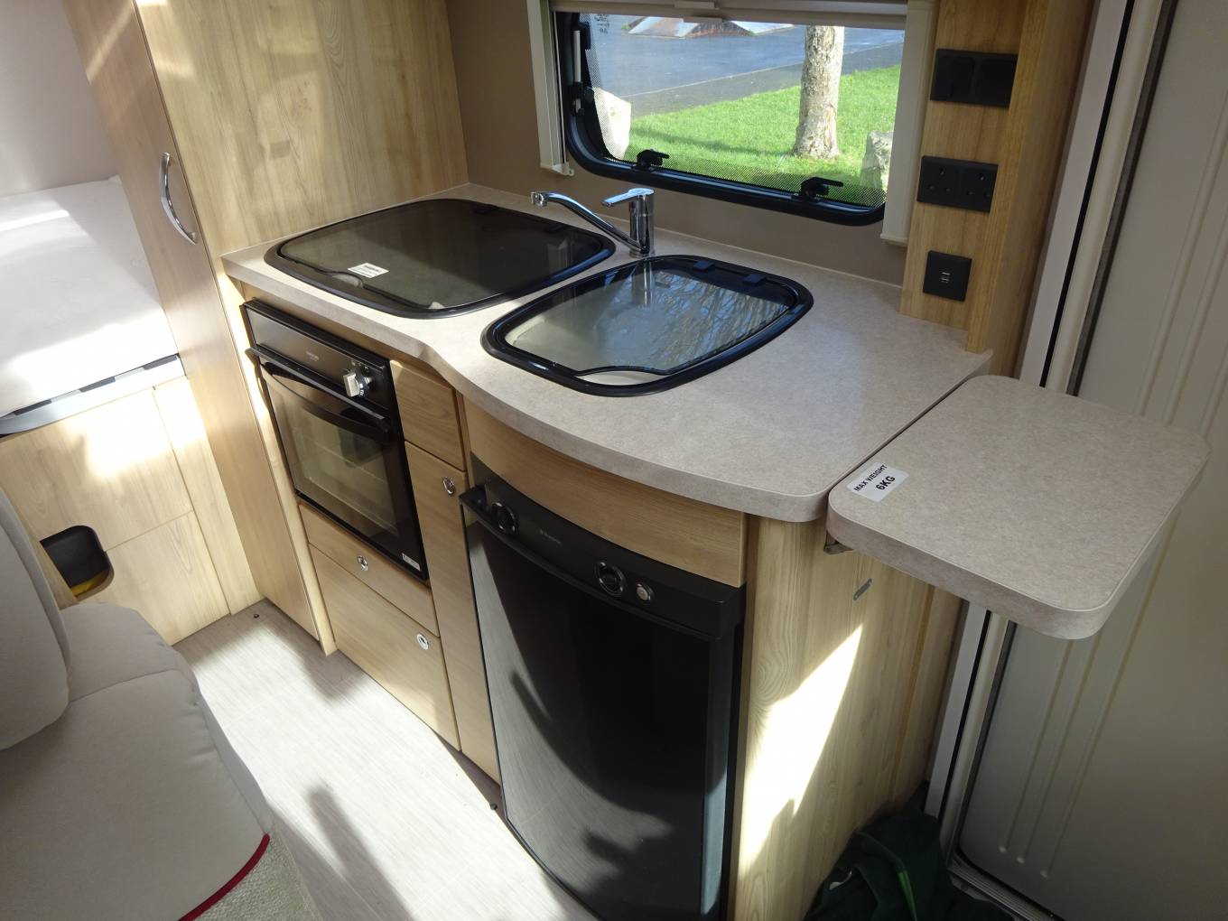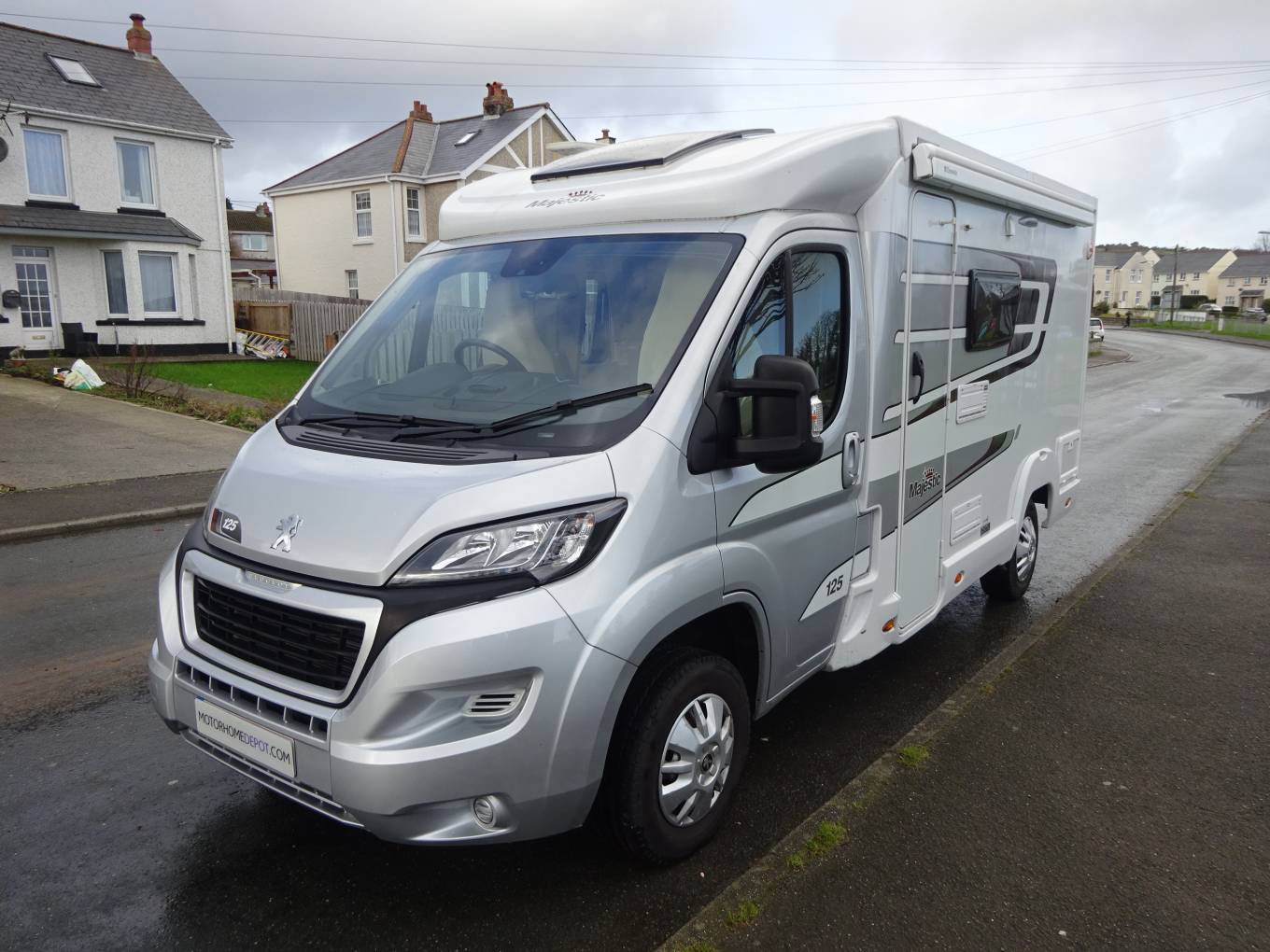 A beautiful 2017 fixed rear bed model with four belted seats and an additional childs single bed.