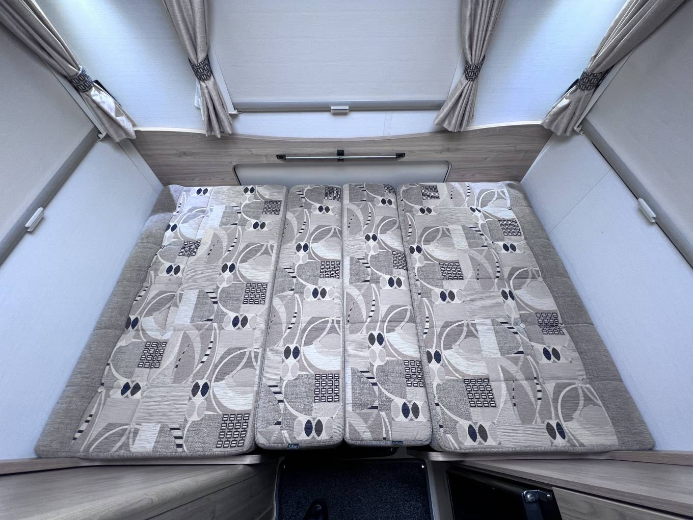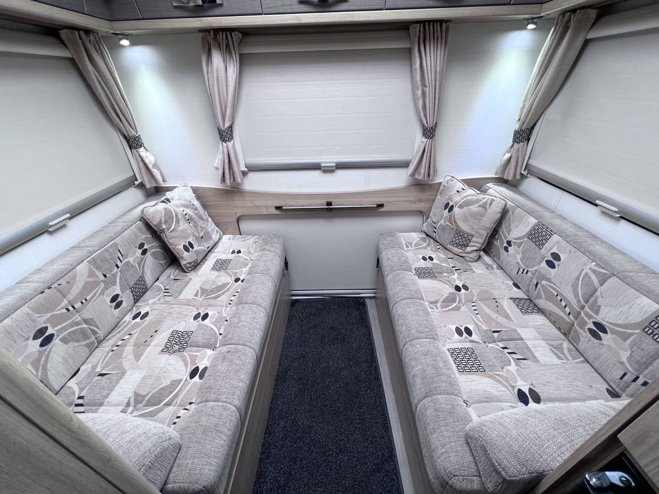 Onto the rear lounge where the twin inward facing settees easily convert into a 6ft 7in x 4ft 2in double bed.