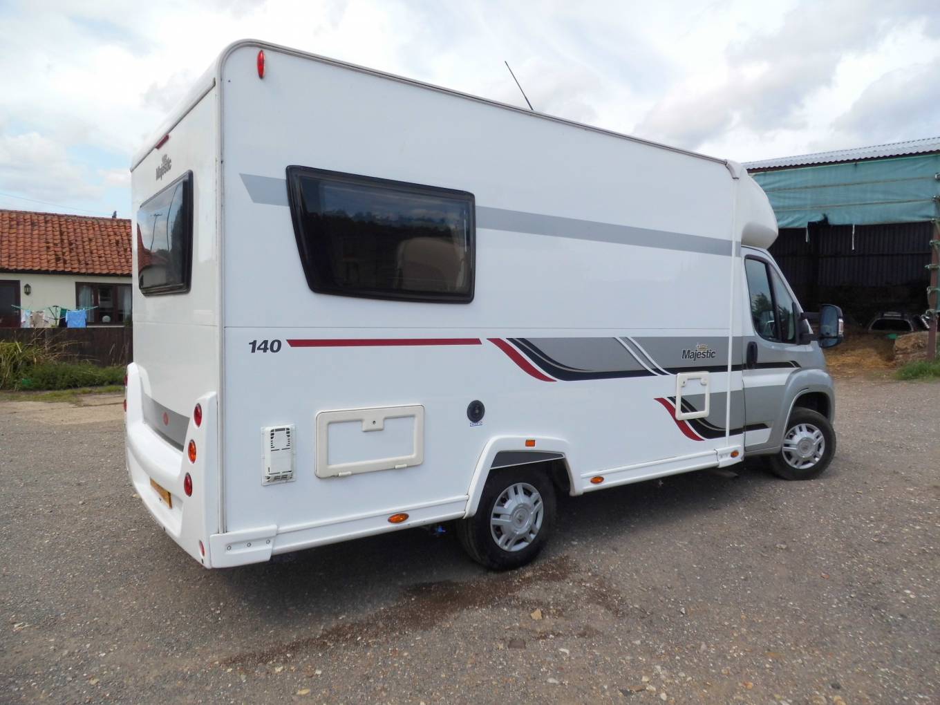 ELDDIS MAJESTIC 140. This compact and very practical vehicle is an ideal couples motorhome. It has a 2.2L engine with 155BHP, manual gearbox, very low mileage and very spacious on the inside. With it's large lounge area, sofa's finished in lovely neutral colours, which convert into a large double at night. This motorhome also has plenty of storage lockers and a good size wardrobe. There is a fully equipped kitchen at the side and opposite is a great washroom with a good sized shower area. At around 6 M in length it is a good sized motorhome and easy to park. MOT until April 2020, two sets of keys, TV, Quattro Levelling ramps, this motorhome is ready to go. Located in Norfolk. For more information, extensive photo file containing approximately one hundred pictures for an in depth virtual tour of the vehicle before you come to view, and to book a viewing, please call Simon or Maria on 01603 381972 or 07757 221350. VIEWING BY APPOINTMENT ONLY.