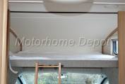 The massive lounge is situated to the rear of the motorhome and has sofas in a u shape with a large sunroof and windows all around which flood the area with natural light. The table neatly folds away into the wardrobe for travelling.The main double bed is made up from the rear lounge area by pulling out a slatted section from the rear & the mattress being made up from the sofa cushions. Once up it really is a big bed.