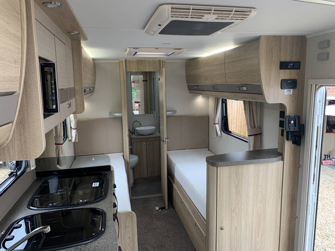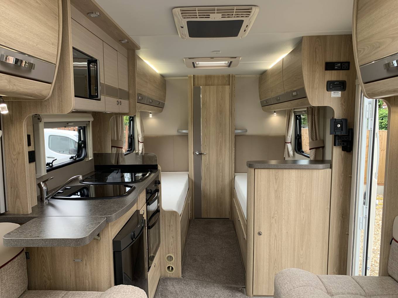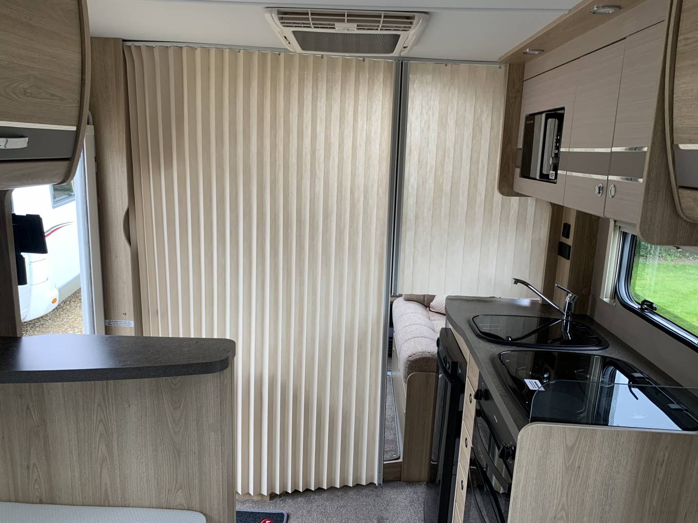 kitchen separates the bedroom from the lounge which has a roof mounted Air-conditioning