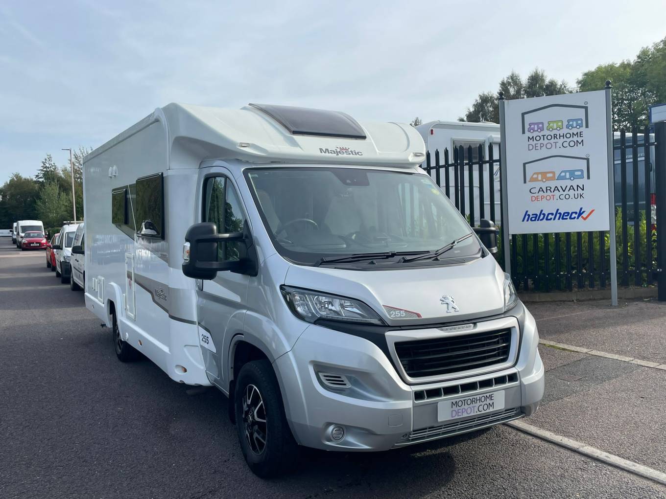 Motorhome Depot Head Office has the pleasure of presenting this stunning Elddis Majestic 255 4 berth, 4 belt motorhome for sale. Based on the Peugeot chassis with 2.2 litre, timing chain driven Euro 6 diesel engine and 6 speed manual transmission. Fantastic condition both inside and out, with just one owner from new maintaining full service and habitation history.
