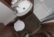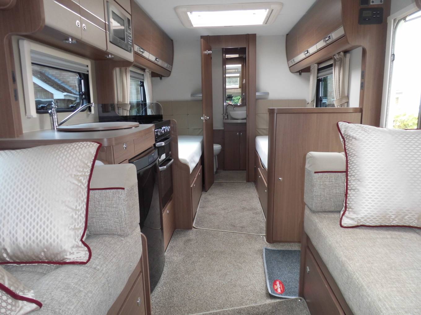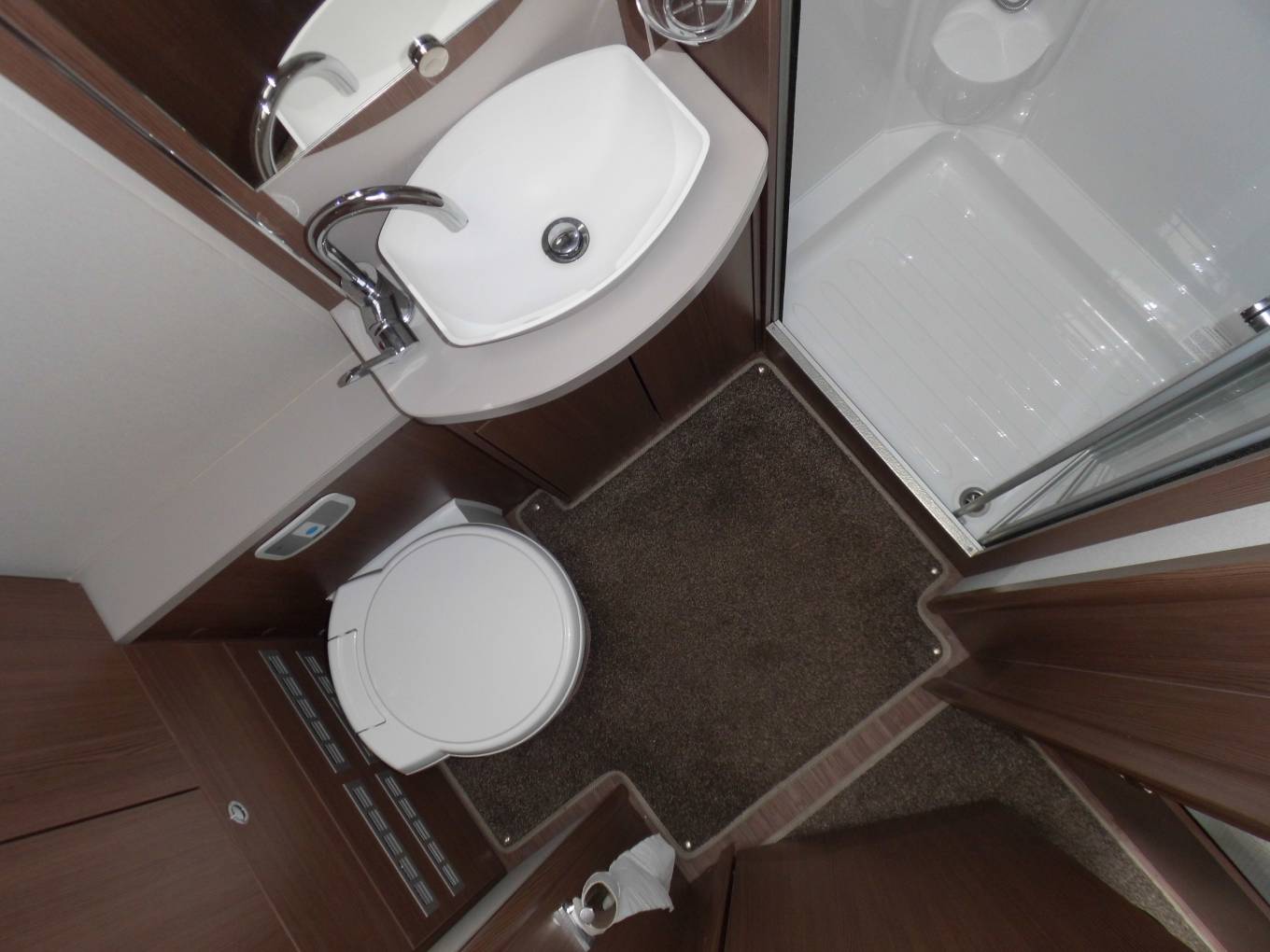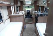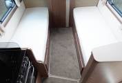 At the rear you find the exceptional washroom which has a large separate shower with screen, a wash basin with mixer tap, a toilet and a large amount of storage space. On exiting the washroom you have 2 fixed single beds with memory foam mattresses which provide a fantastic night's sleep. The great advantage of this layout is that if you need the loo during the night you don't have to climb over your partner in bed. Under the beds there is a very generous amount of storage space.