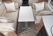 The lounge features 2 sofas, but rather ingeniously these can be easily converted to forward facing seats with belts. When not in use these fold back down to allow the sofa configuration to be used when you are relaxing. Simply add in the freestanding dining table and you have a lovely spot to enjoy meals. Both front seats also swivel to allow these to be brought in to use as well.