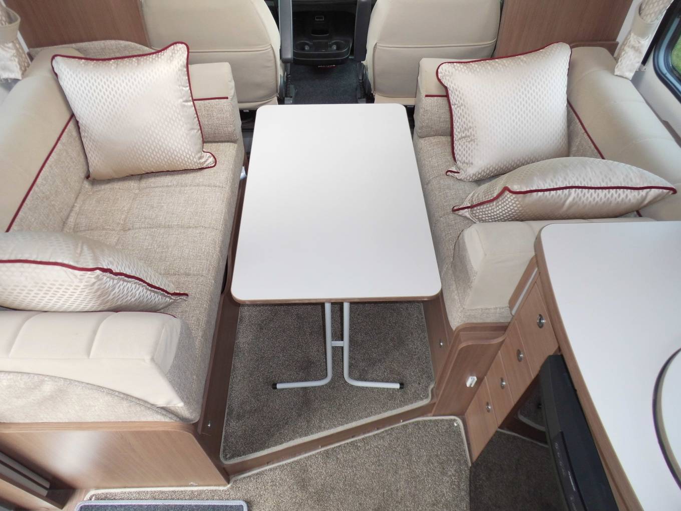 Driving this motorhome is a real pleasure. It has a fully integrated touch screen console controlling DAB radio/MP3 player and sat nav with Bluetooth handsfree, USB and steering wheel mounted controls. It also features cruise control, 2 way rear view mirror, automatic cab air conditioning, a tyre pressure monitoring system, automatic lights and wipers, driver and passenger airbags, electrically heated adjustable wing mirrors and much more. And if that wasn't enough how about an external BBQ point, a wind out awning and a tow bar. The Smart Car, which is available if required, has been fitted with the Smart Tow automatic braking system which cost £2500.